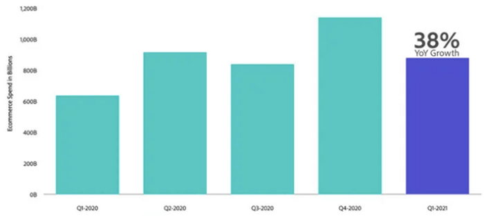 Згідно зі звітом Adobe Digital Economy Index, опублікованому на порталі Belretail, світова електронна комерція досягла $876 млрд за перші три місяці 2021 року – зростання в річному численні склало 38%.