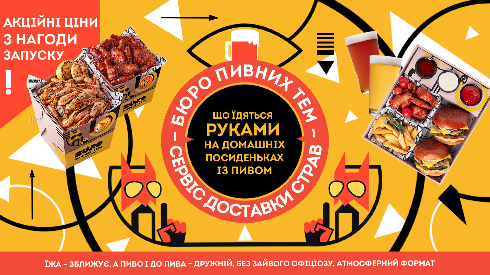 Оскільки асортимент пивбару – не дуже зручний продукт для доставки (в основному гриль і фритюр), виникла ідея створити «Бюро пивних тем». Це страви, які спеціально пристосовані для доставки, а також спеціальна упаковка і обсяг їжі. Працювали над цим три місяці і створили зручний продукт, який доїжджає до споживача саме з тими смаковими якостями, які повинні бути. Наприклад, довго створювали спеціальний соус, переймаючи досвід каліфорнійської мережі закладів The Boiling Crab.