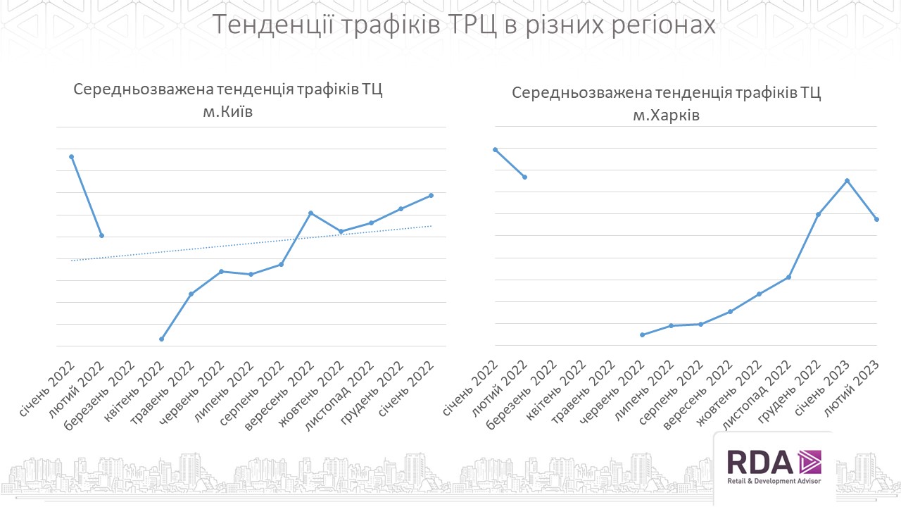 В Харкові ситуація була значно складніша і залишається такою і зараз. Попри це бачимо після вересня-жовтня 2022-го дуже стрімке зростання трафіку в торговельні центри.