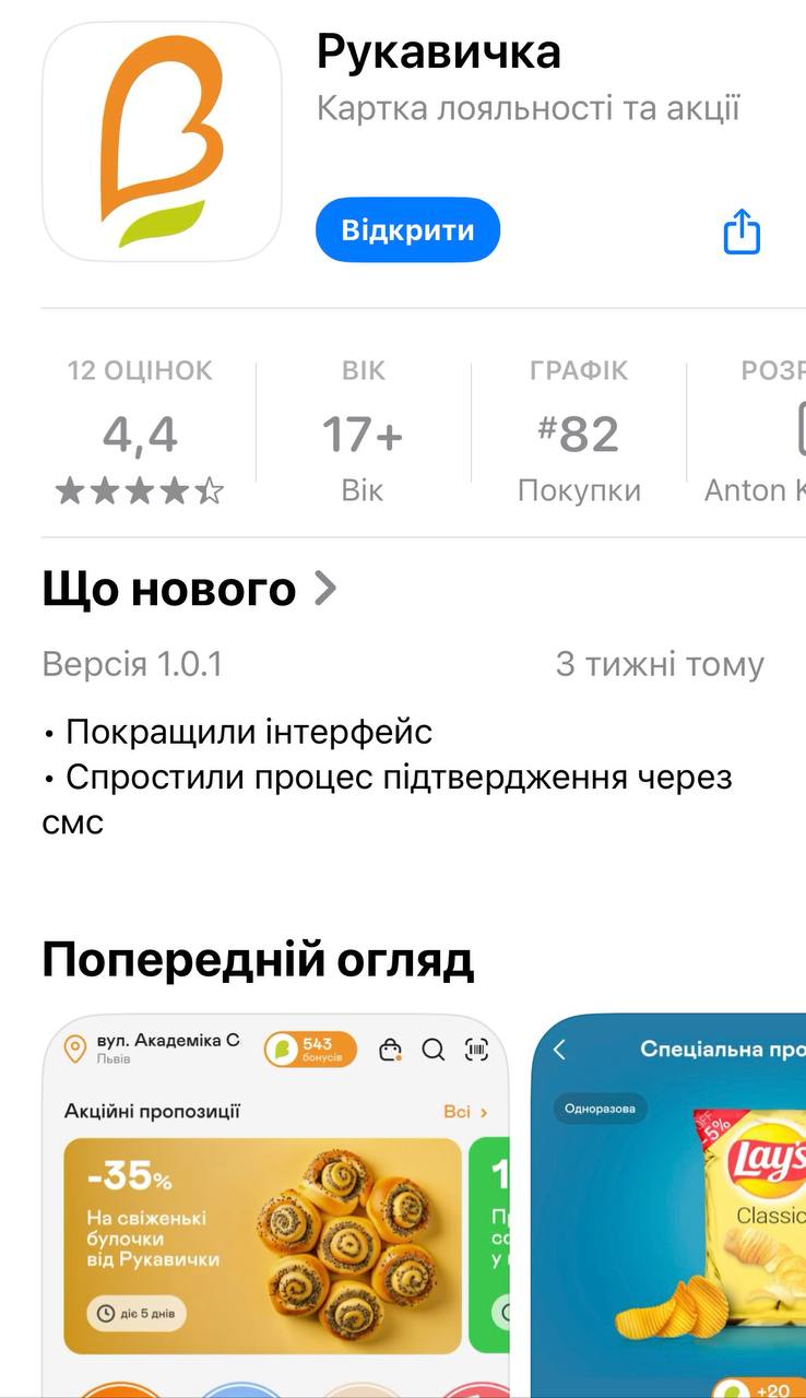 Мережа магазинів Рукавичка входить до складу торгово-виробничої компанії Львівхолод, що працює у сфері роздрібної торгівлі на заході України. Наразі в мережі більше 200 магазинів. До складу компанії також входять логістичний центр, технологічна лабораторія та власне виробництво м’ясної продукції, випічки та страв для швидкого перекусу. В колонці для RAU Антон Кондратенко розповів про процес запуску мобільного застосунку, його особливості, перші результати, плани подальшого розвитку та розширення функціоналу.