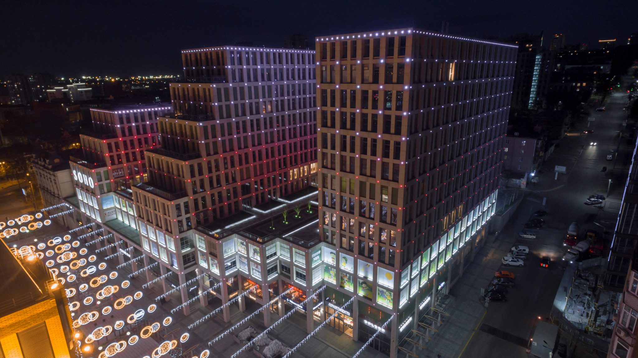 Він об’єднує в собі торговельну зону, яка є 2-ю чергою ТРК МОСТ-сіті, і бізнес-центр. Об’єкти гармонійно доповнюють один одного.