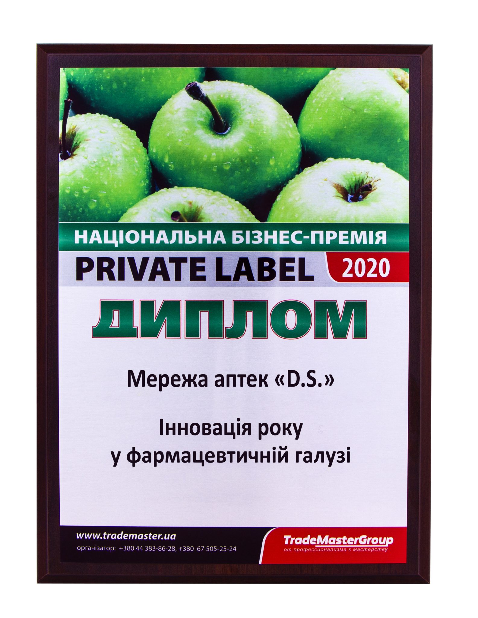На XII міжнародній бізнес-конференції Private Label 2020: «Рітейлер та виробник – курс на розвиток» мережа аптек D.S. (ТОВ Маркет Універсал) отримала нагороди одразу в двох номінаціях: «Вибір року у фармацевтичній галузі» та «Інновація року у фармацевтичній галузі»