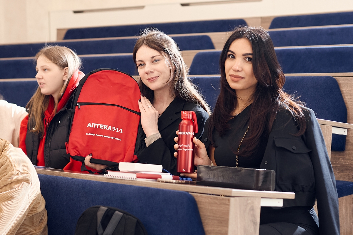 Валентина Йовенко, керівниця відділу корпоративних комунікацій Аптека 9-1-1, виступила з презентацією про компанію та розкрила перед студентами різноманітні можливості кар’єрного зростання в мережі.