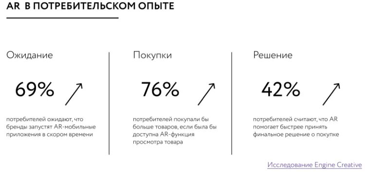 У купівельній поведінці теж відбуваються зміни. 76% споживачів купували б більше, якби була доступна функція AR-перегляду товару.