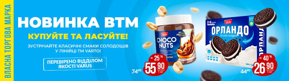 Нагадаємо, що Varto — це власна торгова марка Varus, в асортименті якої — сотні товарів, ексклюзивно виготовлених на замовлення мережі. Під цим брендом виробляються молочні продукти, м’ясні вироби, бакалія, напої, кондитерські вироби та багато іншого. Кожен товар ВТМ проходить ретельну перевірку відділом якості Varus та відповідає всім стандартам українського законодавства.