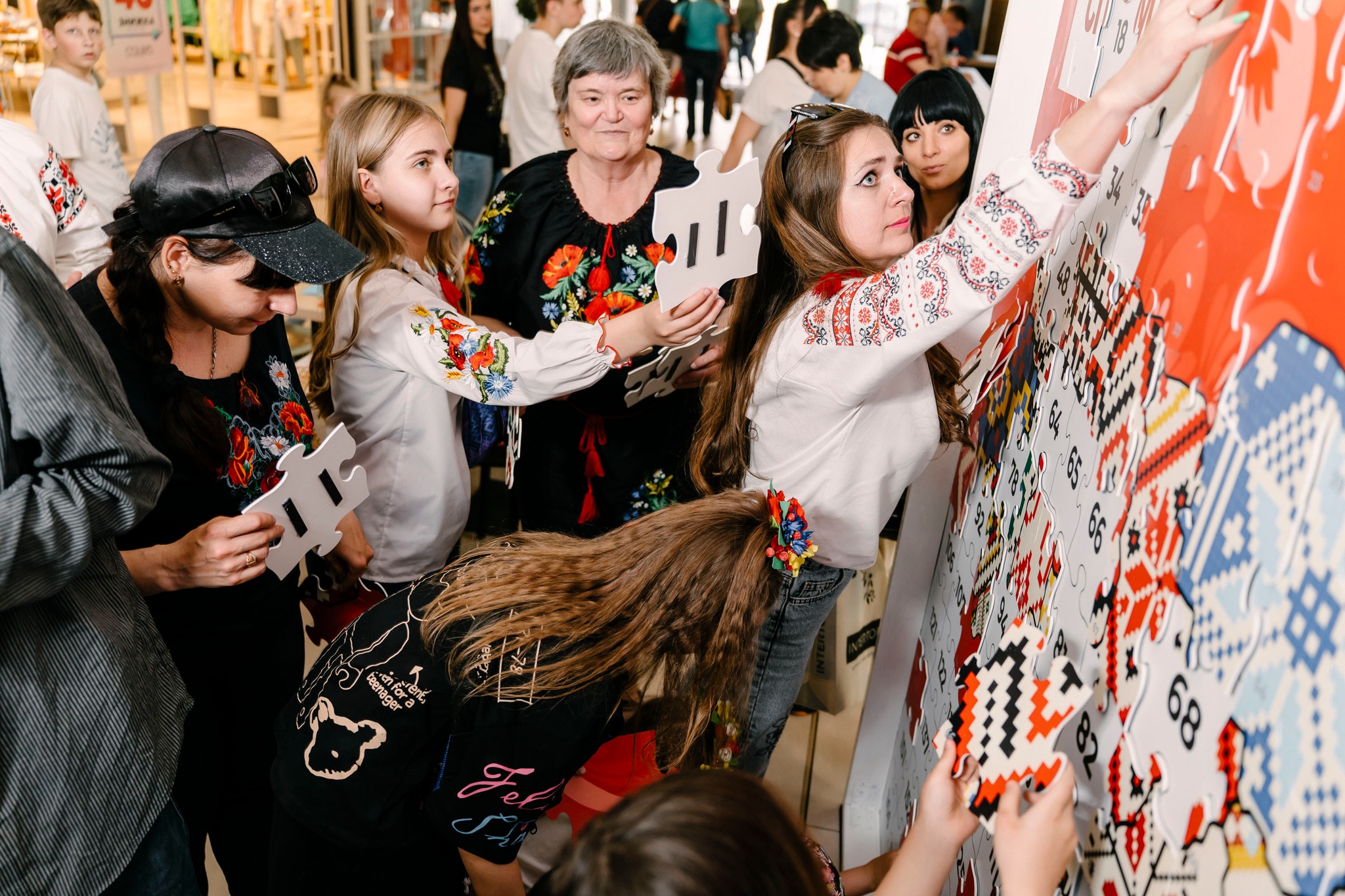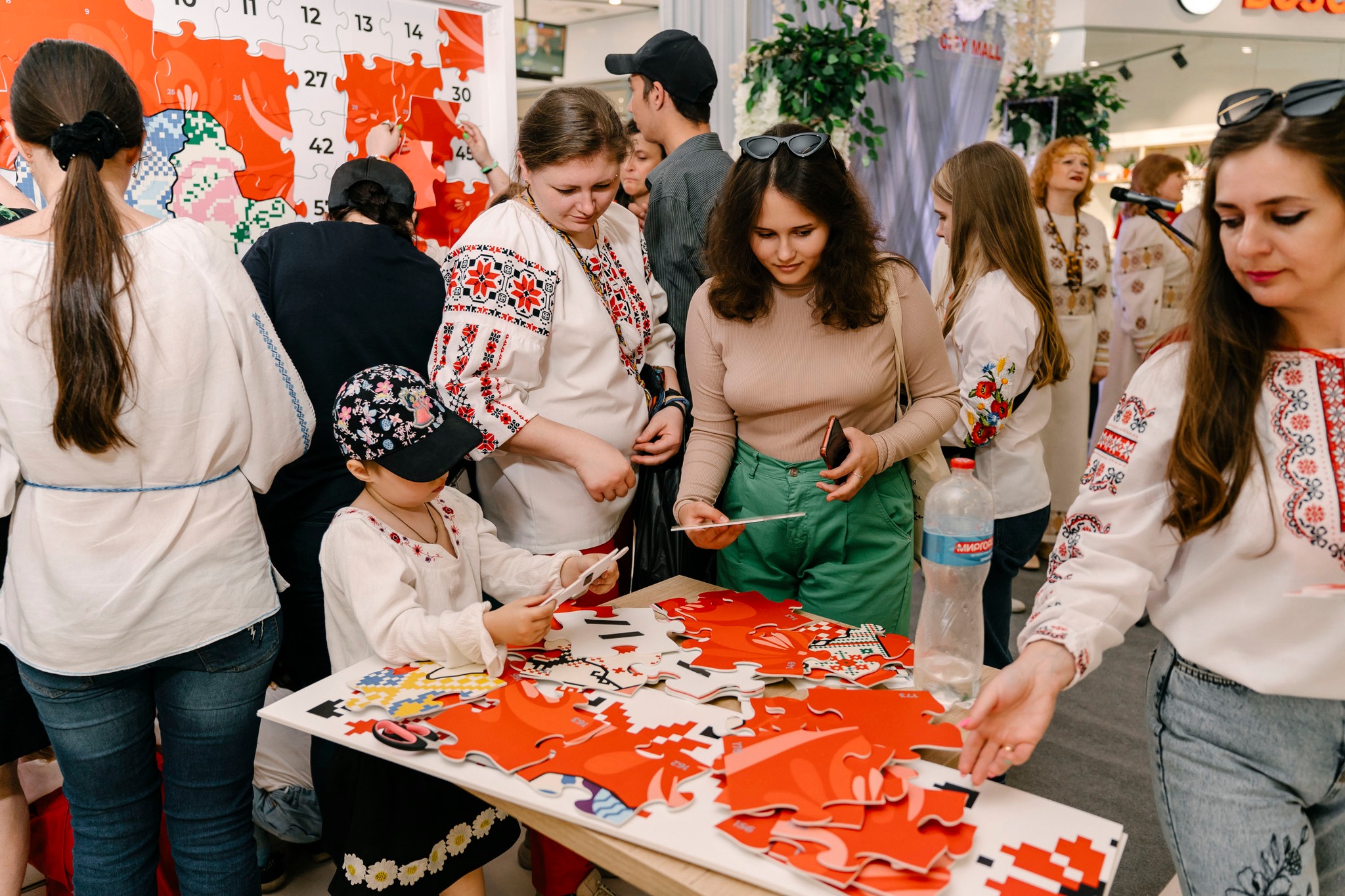 20 травня у ТРЦ РайON і дорослі, і діти впродовж декількох годин збирали традиційний орнамент “Український код ТРЦ Район” із 25 000 деталей конструктора “Лего” й врешті-решт спільними зусиллями створили інсталяцію площею 5 кв. м. ТРК Проспект у Києві в цей день залучив відвідувачів до реалізації арт-інсталяції “Вишивана Україна”, яка розповідає про історію, особливості орнаменту регіональних костюмів України.