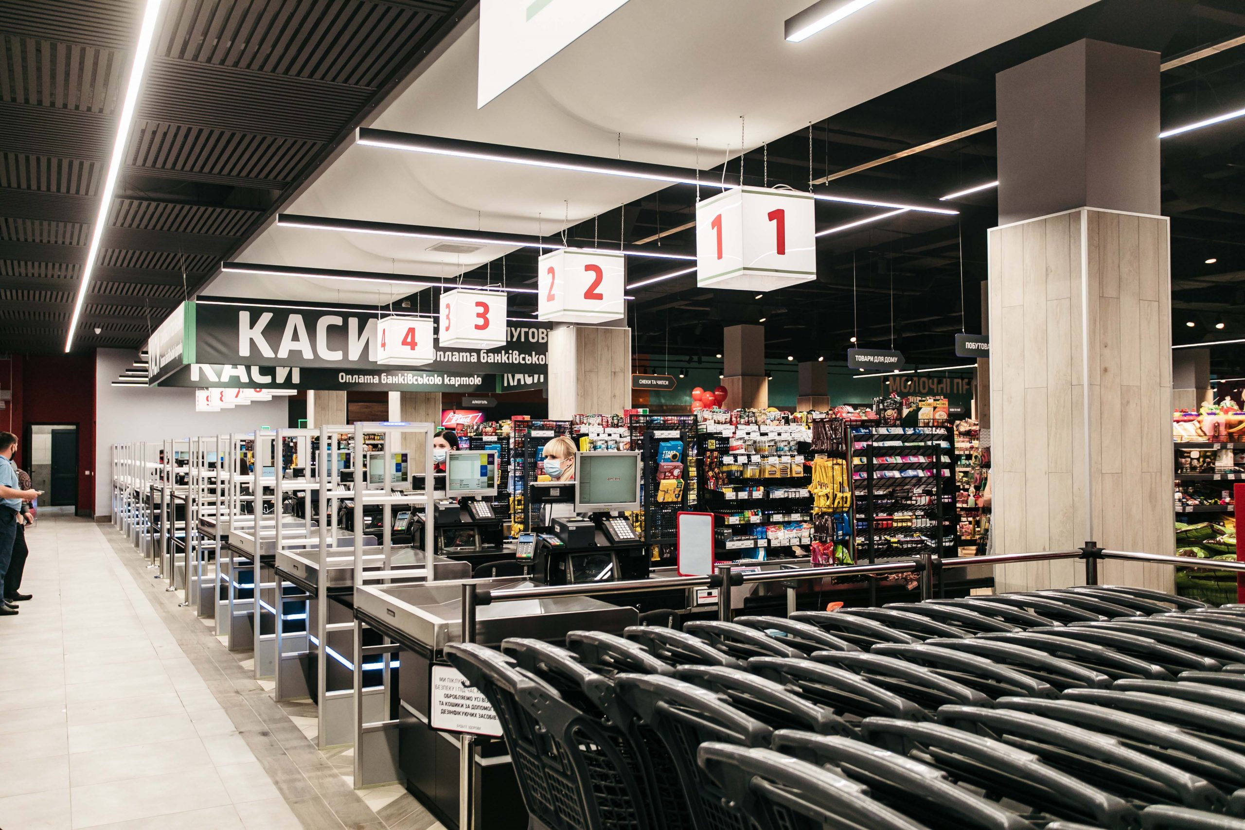 Для покупців діють 9 лінійних кас та 5 кас самообслуговування.