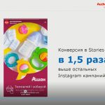В Ашан ми отримали конверсію в сторіз в 12,5 рази вище за інших Instagram кампаній. Виявилося, що для цього достатньо правильно налаштувати таргетинг.