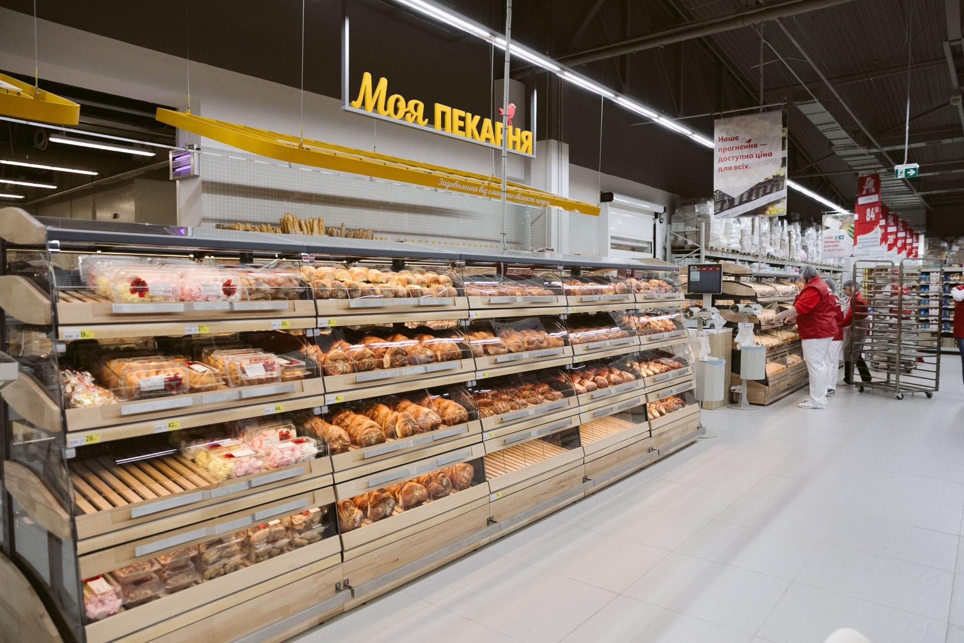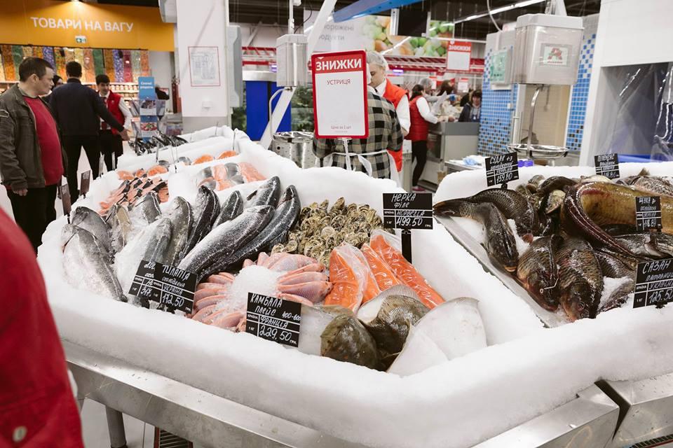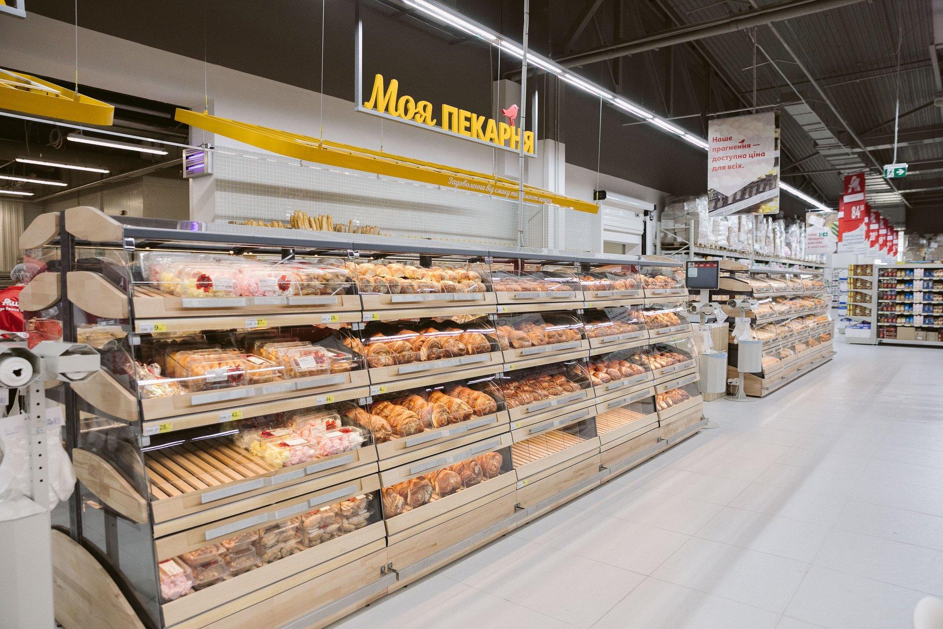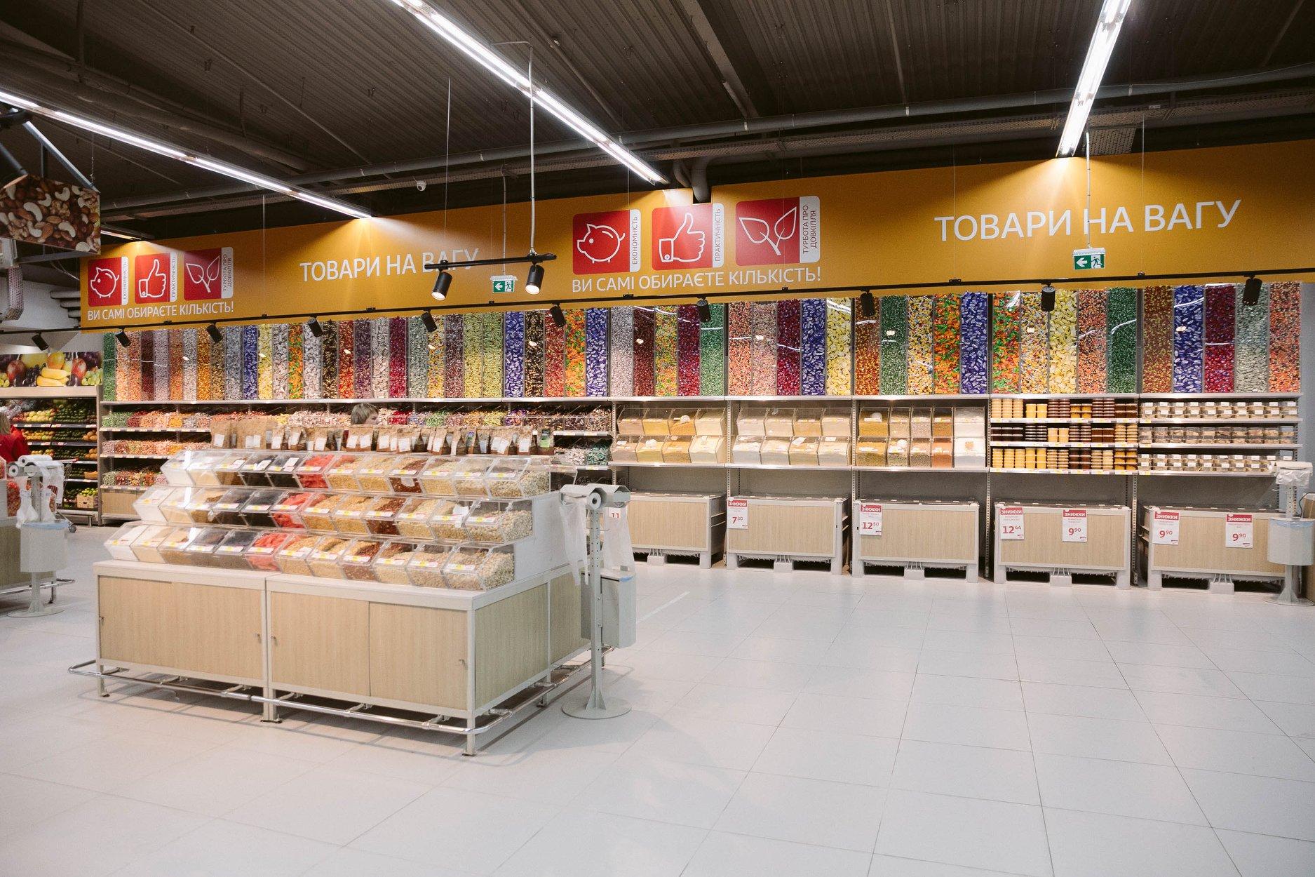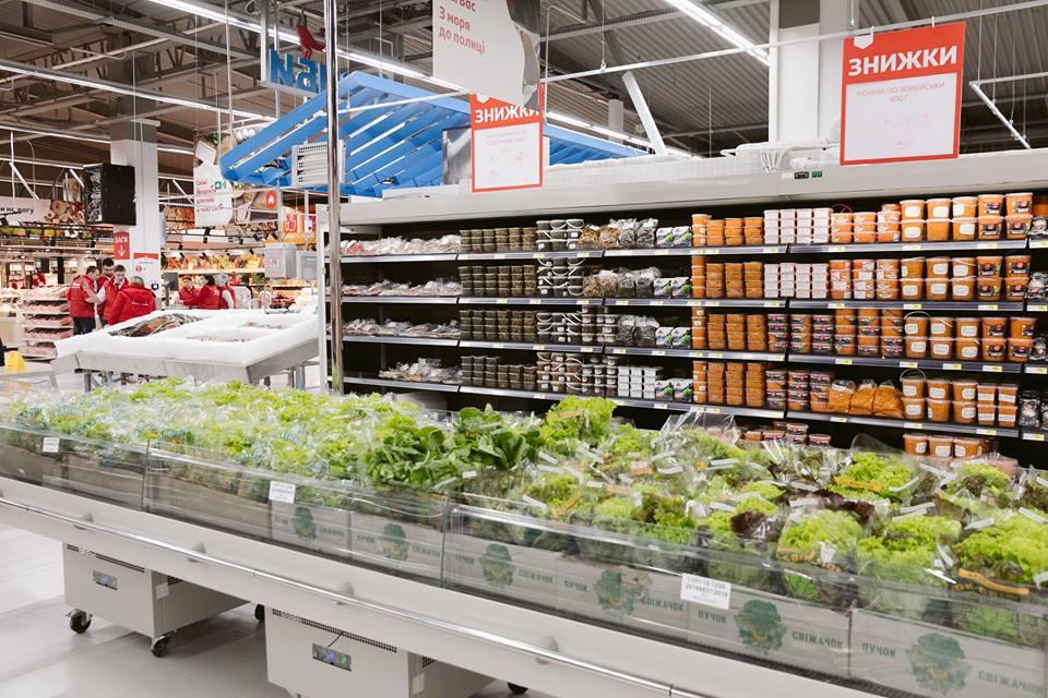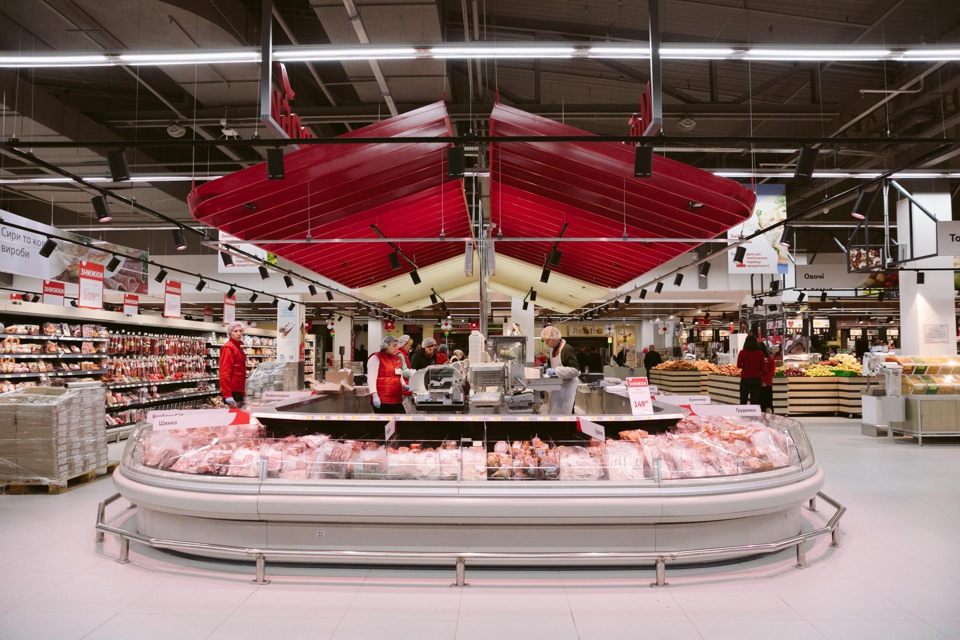 Площа магазину – 3 500 кв. м – дозволяє представити широку гаму свіжих продуктів – хліб власного виробництва, м’ясні та рибні вироби, страви кулінарії, апетитну випічку та тістечка, суші та піцу власного виробництва, які можна скуштувати відразу у кафе, розташованому в самому магазині.