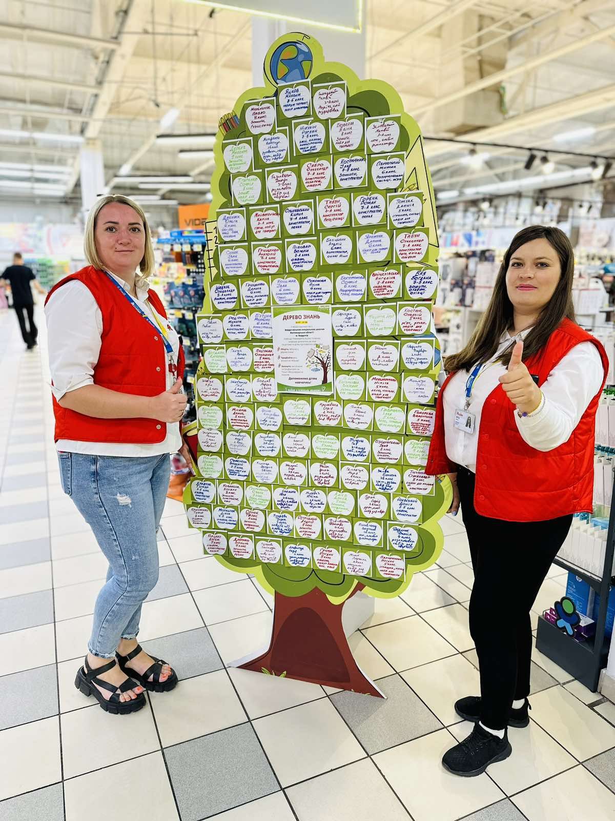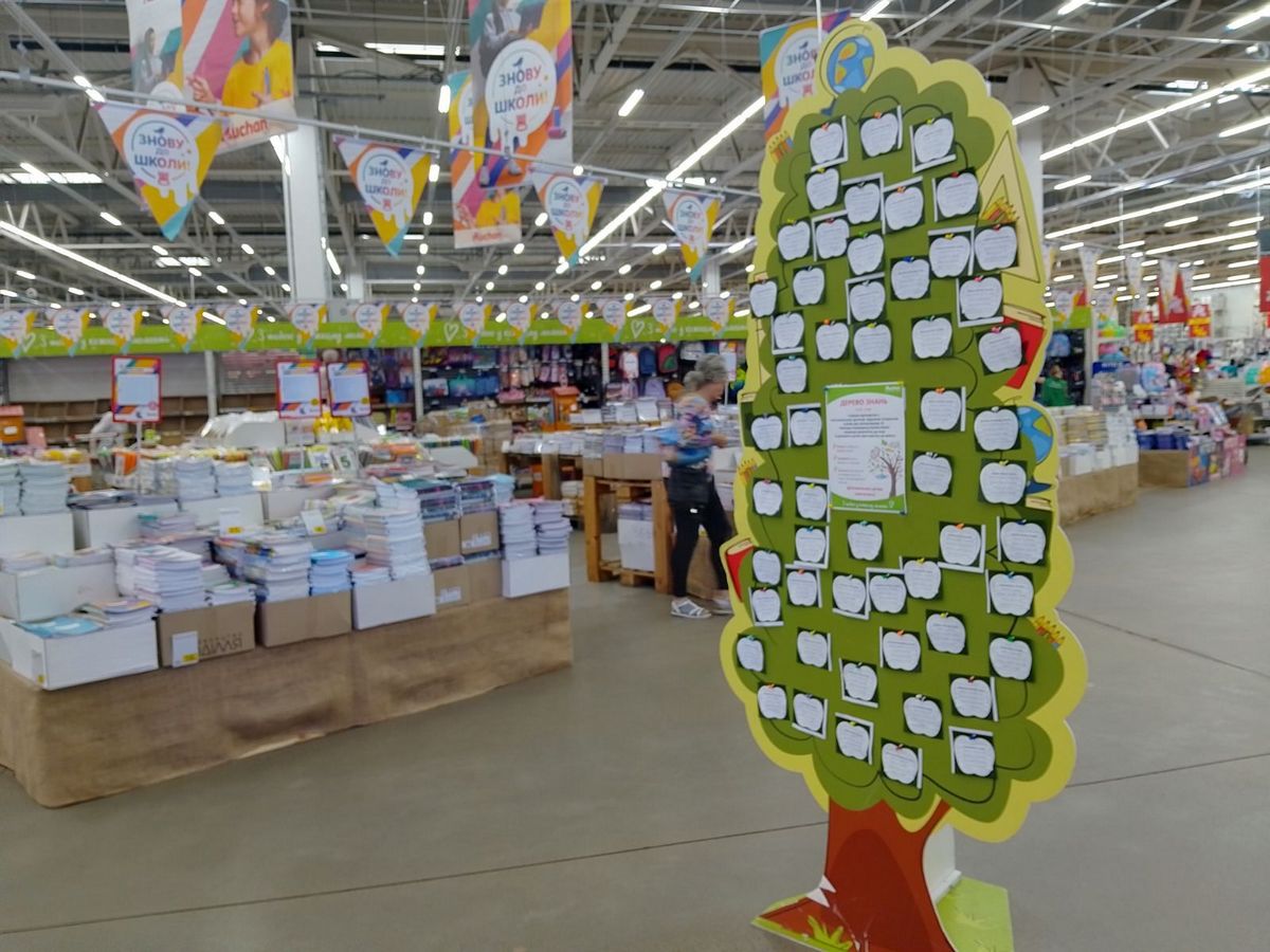 Перед початком навчального року у гіпермаркетах мережі Auchan вже традиційно запускають проєкт “Дерево знань” – інсталяція з конкретними потребами дітей, що прикріплені на гілках дерева. Споживачі магазину можуть ознайомитися з цими потребами та придбати відповідні товари, такі як канцтовари, спортивний інвентар або одяг. Зібрані речі передаються безпосередньо дітям у спеціалізованих школах та дитячих будинках.