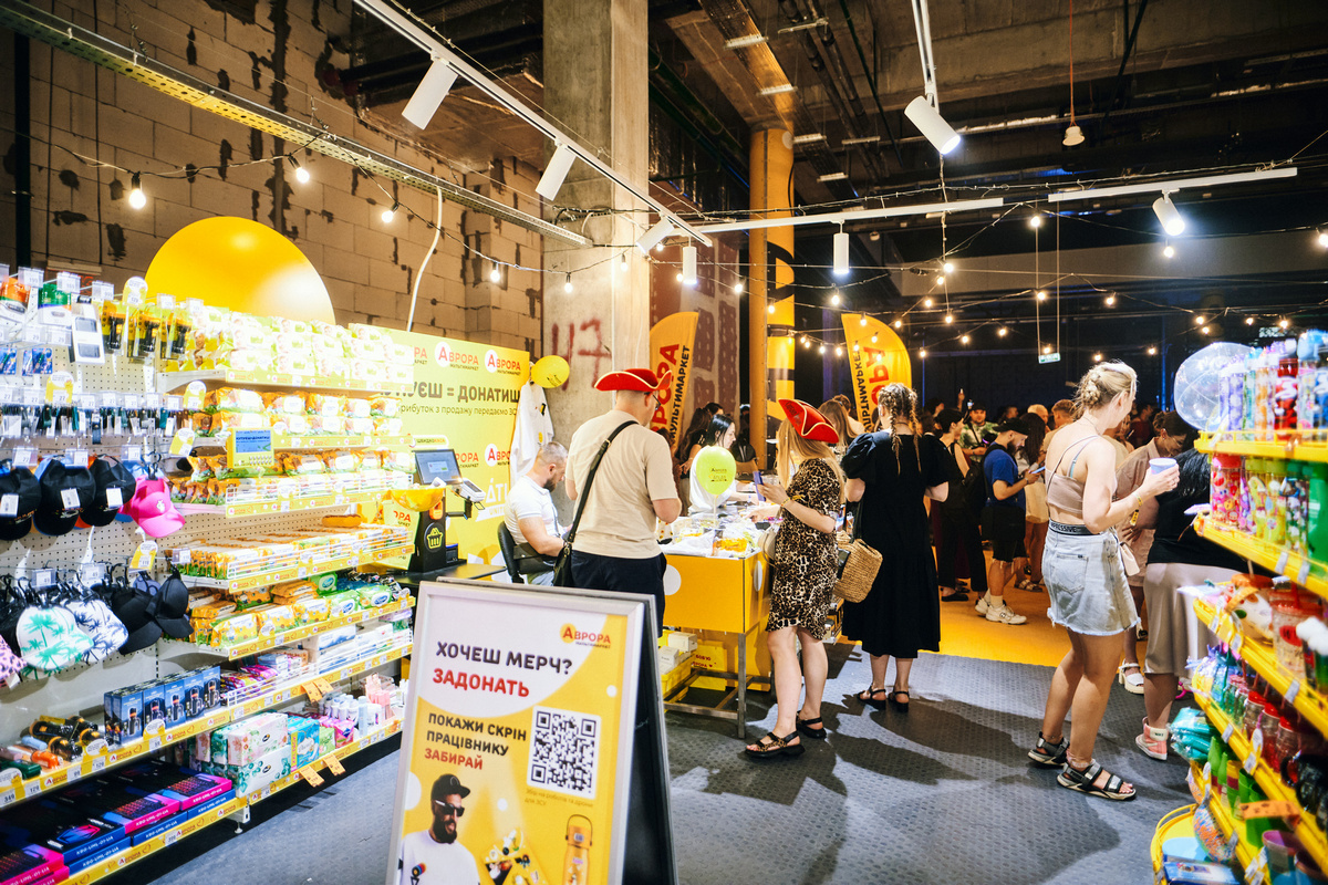 Аврора поповнила збір 5 мільйонами гривень прямого донату, й не тільки. Спеціально для фестивалю компанія розробила колекцію мерчу з футболок, шкарпеток, шоперів, блокнотів і наліпок — 100% з їх продажу передали на збір. Як і весь прибуток із зони «Аврора мультимаркет stage», де всі три фестивальні дні працював мінімагазин мережі.