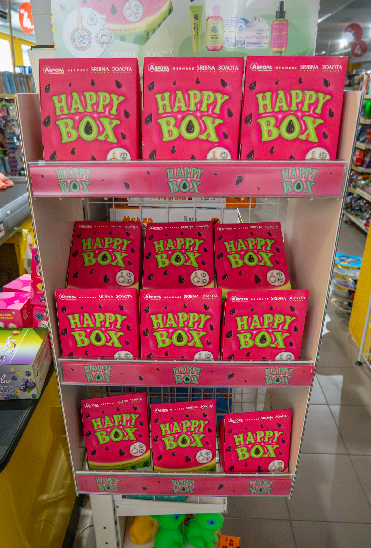 Літні Happy Box в Аврора — це вже другий партнерський проєкт національних брендів. Першим були WOW box, що спричинили справжній фурор і розлетілися з полиць за пʼять днів. Шалений попит був цілком обґрунтований: ціна набору доглядових засобів була значно нижча за їхню сумарну роздрібну вартість, до того ж у певних коробочках ховалися прикраси від Sribna Kraina. Відеоогляди розпакування боксів збирали у соціальних мережах мільйони переглядів.