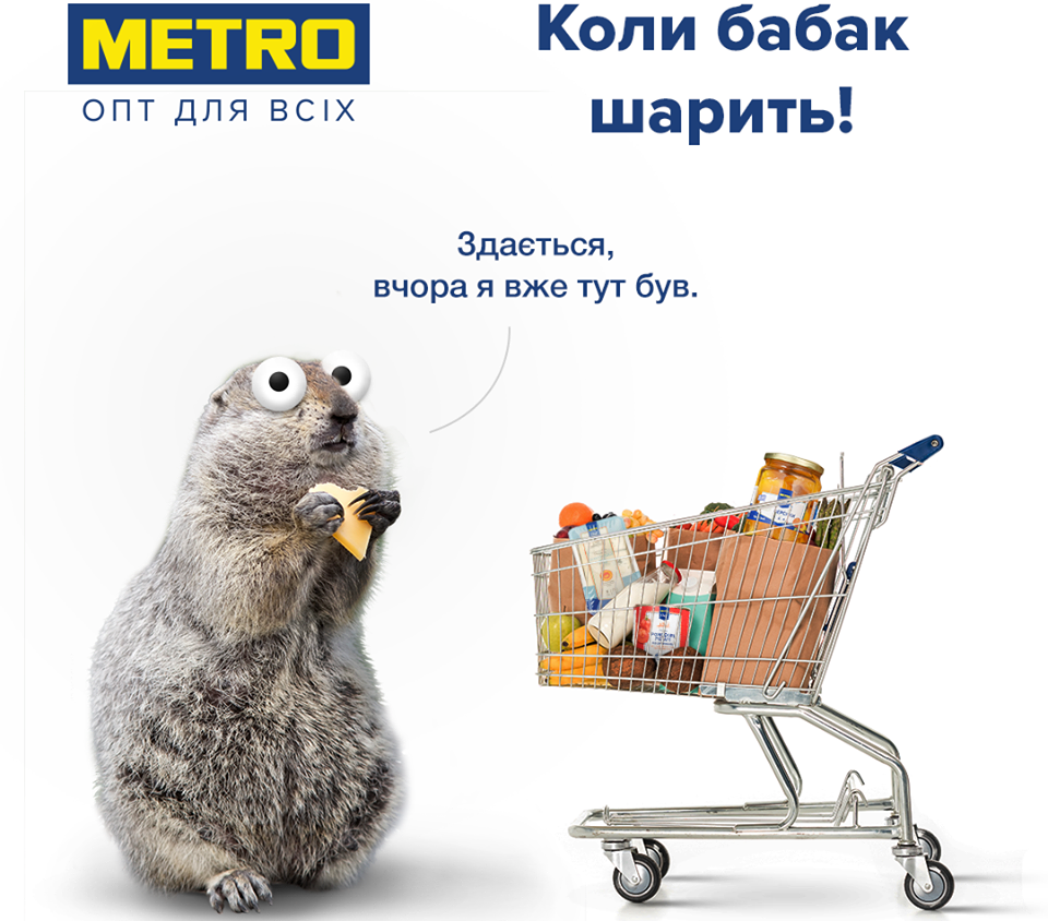 Ще один креатив Metro був пов’язаний з Днем Бабака, який традиційно проходить 2 лютого. У випадку цього переляканого звірка, бабак знову і знову приходить в гіпермаркет за продуктами.