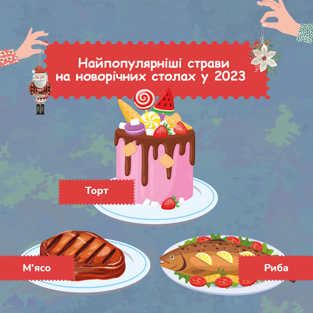 За результатами конкурсу, можна стверджувати, що й цьогоріч вони прикрашали більшість святкових застіль українців. Разом з тим, в топ-5 популярних новорічних страв увійшли м’ясо, риба, а от найзгадуванішою прикрасою святкового столу став торт.