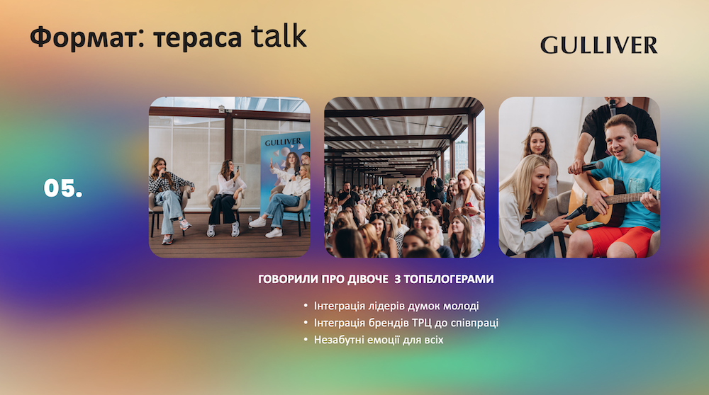 Паралельно ми також запустили проект Тераса Talk – це формат живого спілкування з лідерами думок на актуальні теми. Також дуже вдалий формат, де аудиторія приходить поспілкуватись зі своїми улюбленими блогерами. А ми отримуємо велике охоплення та хороші відгуки.