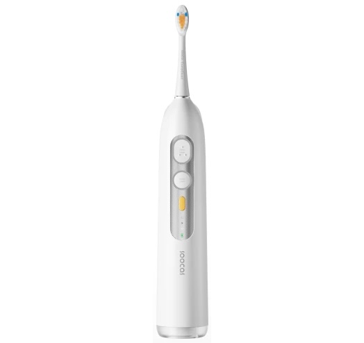 Перша новинка – це звукова зубна щітка Soocas T03 Neos з вбудованим іригатором. Ця модель забезпечує ефективне очищення поверхонь зубів, міжзубного простору та ясен. Soocas T03 Neos видаляє до 40 разів більше нальоту та очищує міжзубні проміжки вдесятеро ефективніше за звичайну зубну щітку, до того ж може впоратися із застарілими відкладеннями. Глибоке очищення та відмінний результат досягаються завдяки поєднанню руху щетинок із впливом потоку води під тиском. Soocas T03 Neos генерує імпульси для забезпечення ефективного видалення залишків їжі, тому після чищення зубів не знадобиться зубна нитка. Для зручності користування щітку можна налаштувати під власні потреби: модель має делікатний та повсякденний режими очищення та три рівні інтенсивності: ніжний, стандартний та сильний. В комплекті наявні дві насадки. Час роботи на одному заряді акумулятора ― до 30 днів. Вартість новинки – 7999 гривень, але до кінця травня її можна придбати за акційною ціною – 5 999 гривень.