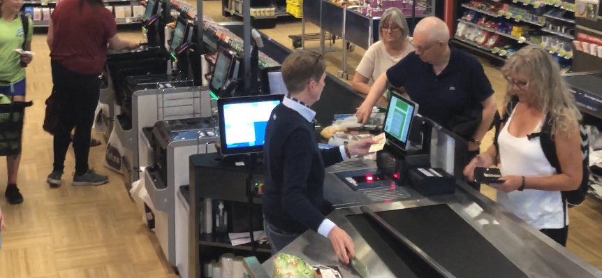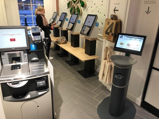 У більшості випадків для кас самообслуговування виділяється окрема зона. Тоді асистентові зручно контролювати покупки і одна людина може обслуговувати до 10 кас самообслуговування в непікові години, в пікові – близько 4-6.