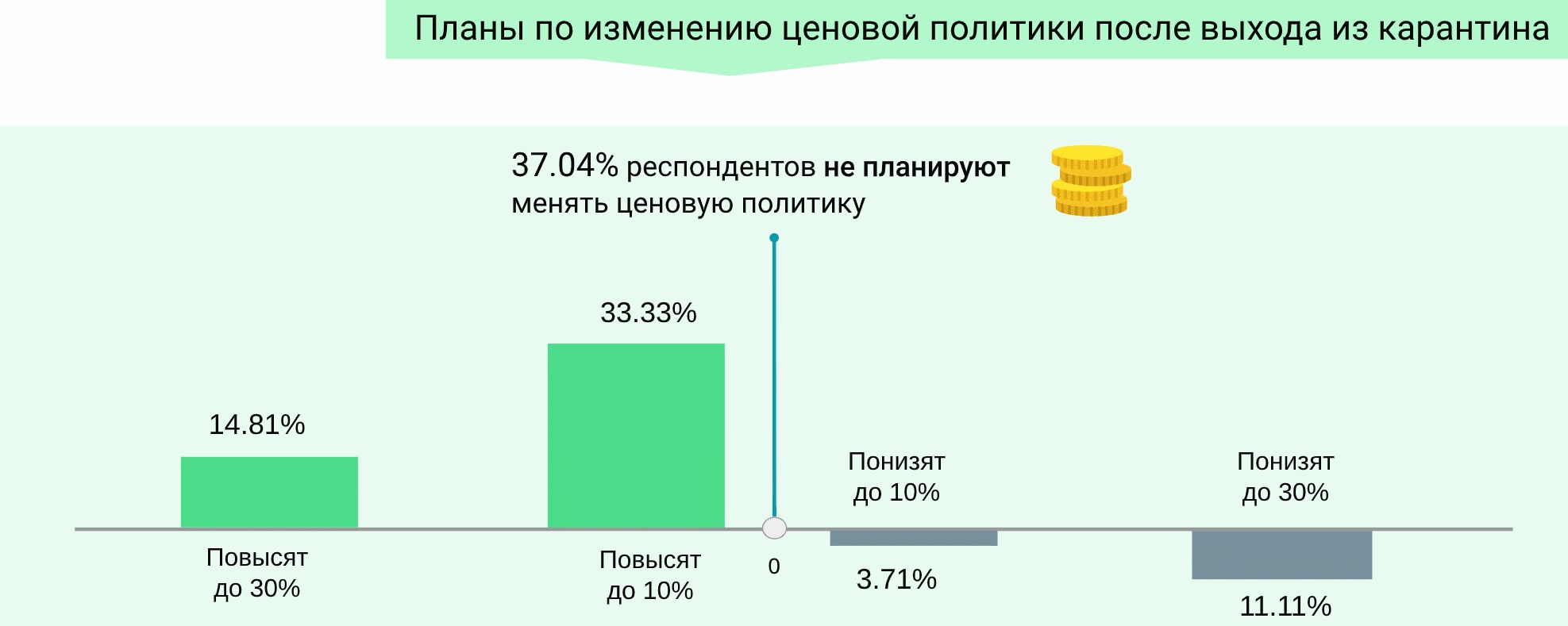 Цікаво, що незважаючи на всі складності, більшість підприємців не планують підвищувати ціни. А близько 15% опитаних і зовсім мають намір знизити ціни. При цьому майже половина респондентів вірить, що на докризові обсяги прибутків вдасться вийти вже в найближчі півроку.