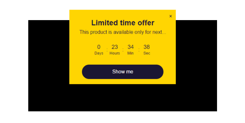 1. Встановіть на сайті таймер зі зворотнім відліком часу дії знижки під час розпродажів. Створення почуття терміновості творить чудеса в електронній комерції. І коли всі прагнуть отримати кращу пропозицію в Чорну п’ятницю, це почуття терміновості подвоюється.