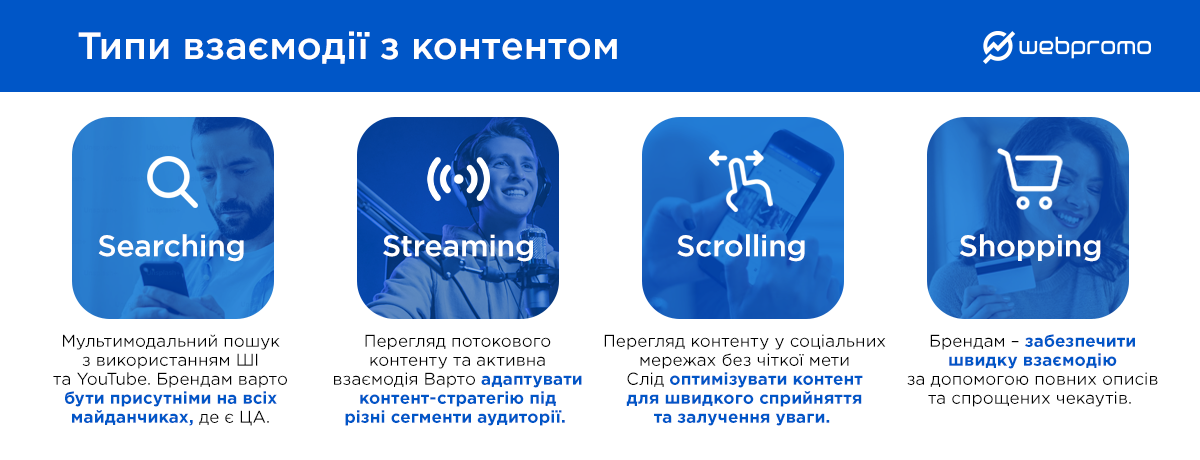 Процес прийняття рішень став фрагментованим, миттєвим та циклічним. Споживач плавно та одночасно переходить між різними типами взаємодії з контентом та продуктами.