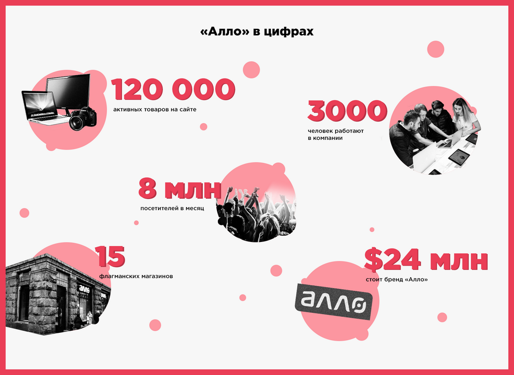 До нинішнього моменту історія АЛЛО тільки підтверджувала сформовану тенденцію. Роздрібна мережа, що була заснована в далекому 1998 році, за майже 20 років існування відкрила магазини в 130 містах України і найняла більше 2600 співробітників. А потім, скорегувавши курс на інтернет-торгівлю, стала одним з найбільших гравців і в e-commerce. І це навряд чи стало б можливим без кількох ключових рішень, прийнятих за останні 10 років.