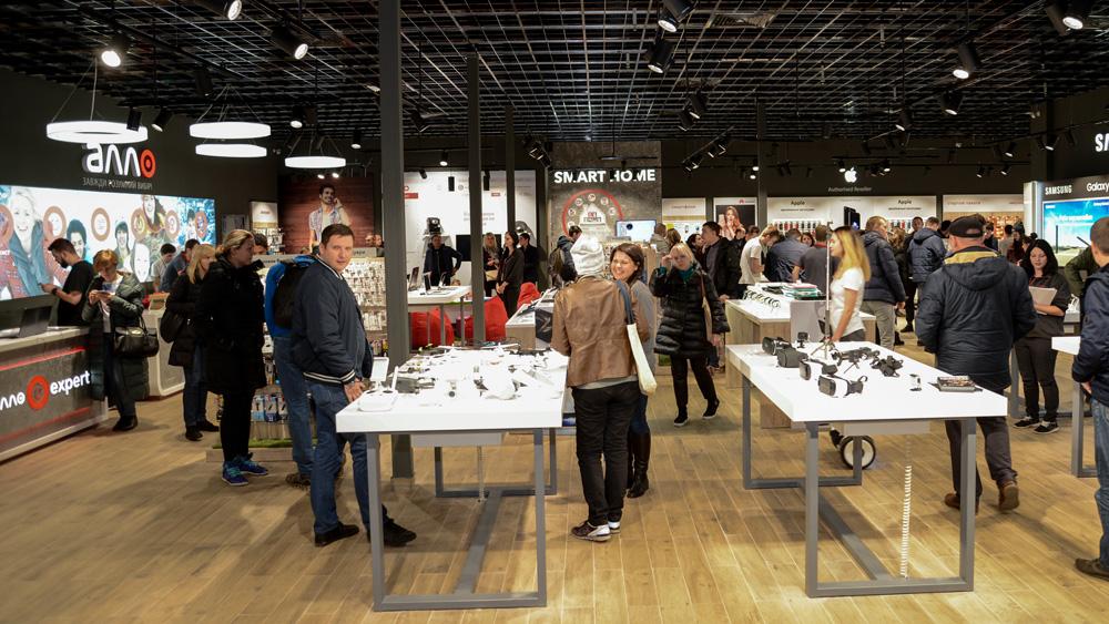На думку Максима Раскіна, одного з власників мережі АЛЛО, саме так повинні виглядати магазини техніки в 2017 році: «Очікування клієнтів від офлайнових точок серйозно змінилися: якщо раніше смартфони купувалися в найближчому кіоску великої мережі (формати були плюс-мінус однаковими, не було сенсу шукати іншу точку), то зараз магазини персональної електроніки – це destination point, а покупка смартфона або гаджета – набагато більша подія».