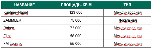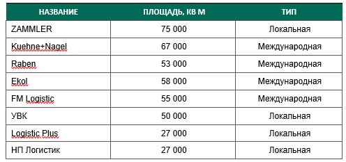 Також серед угод з оренди необхідно відзначити розширення національного логістичного оператора НП Логістик, який додатково орендував 8 600 кв. м в складському комплексі Omega II, а логістичні оператори Kuehne+Nagel і Rhenus орендували по 5 000 кв. м кожен в складських комплексах FIM Service і West Gate Logistics, відповідно.