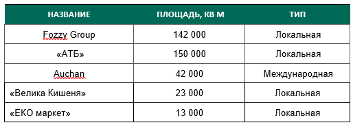Найбільші орендарі на ринку Києва і України серед представників сектора роздрібної торгівлі