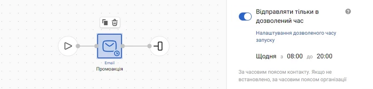 Крім цього, в eSputnik є гнучке налаштування часу відправки, наприклад в робочий час, не раніше 9 ранку тощо. А також система може надсилати повідомлення за локальним часом користувача, враховуючи його таймзону, що особливо важливо для міжнародних проєктів.