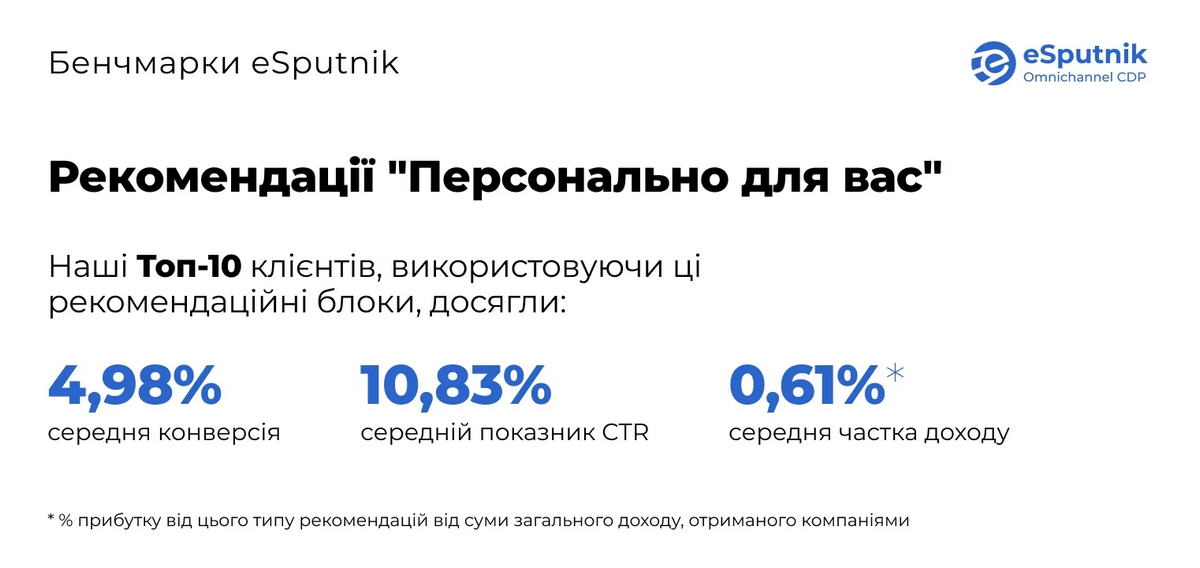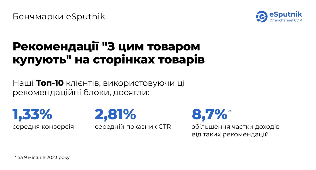 Більше даних дослідження ви можете побачити в Гайді про персональні товарні рекомендаціїї від омніканальної CDP eSputnik.