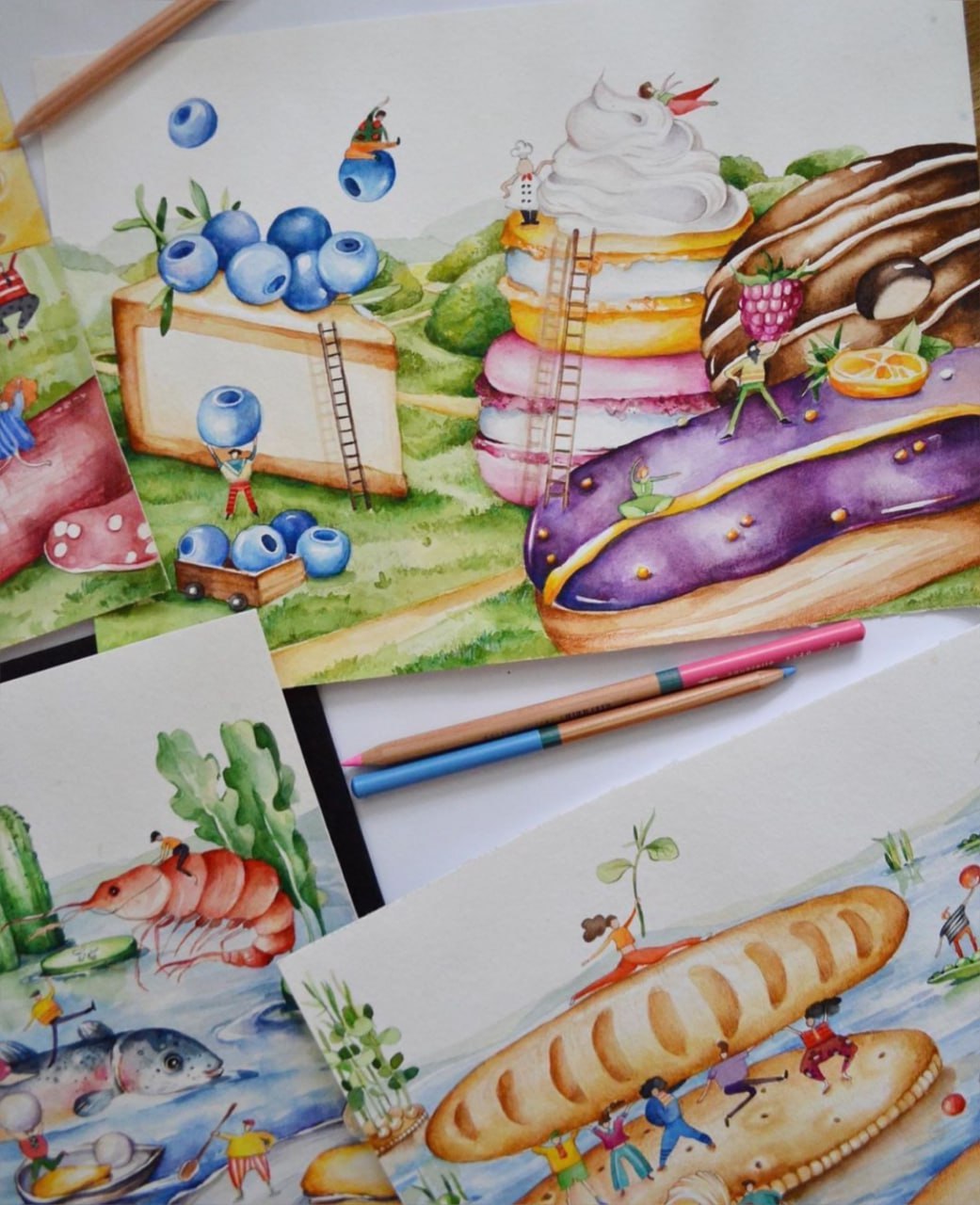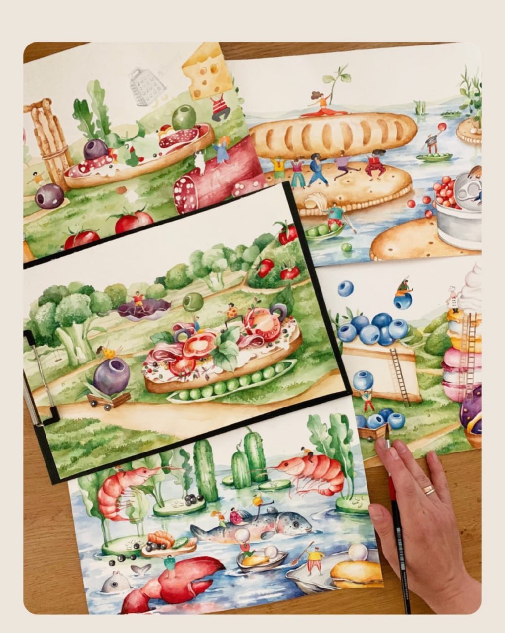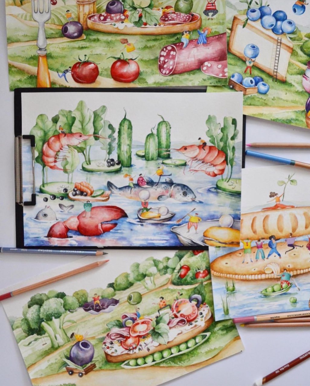 «Отримавши опис проекту від Varus, у мене одразу виникла купа ідей. Тема маленьких людей і великих продуктів змалювалася сама собою та втілилася на папері. А згодом була перенесена на сертифікати ручної роботи, створені серцем», – поділилася враженнями ілюстраторка Анастасія Білецька.