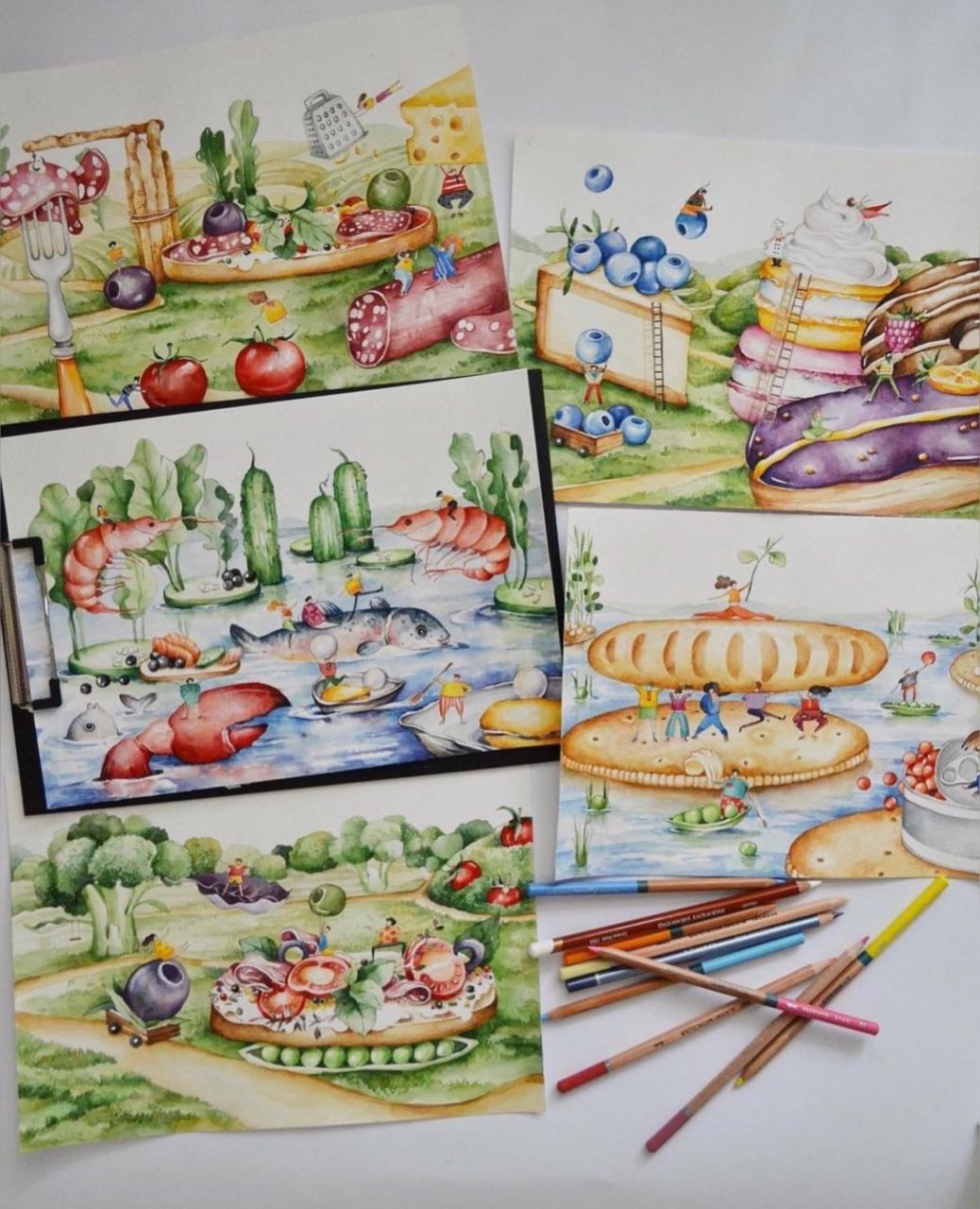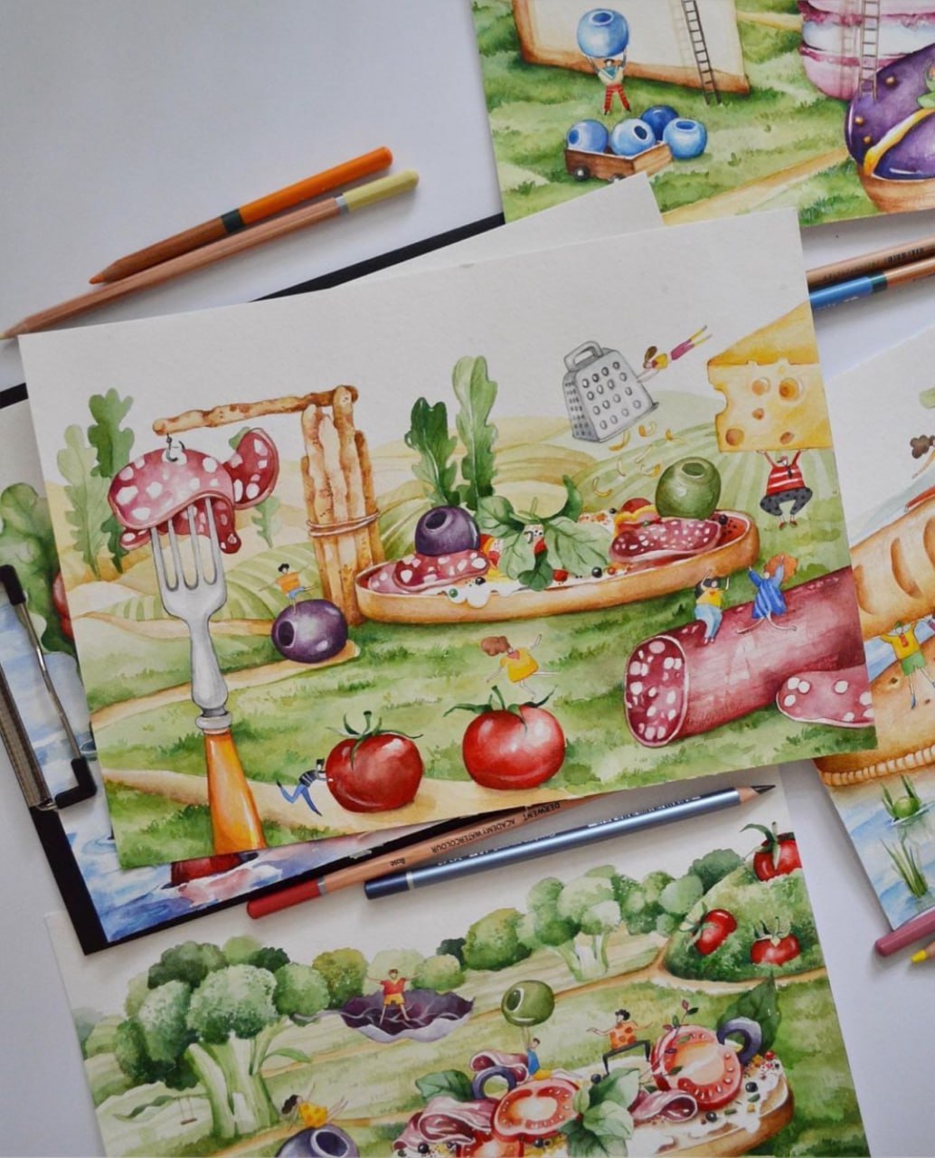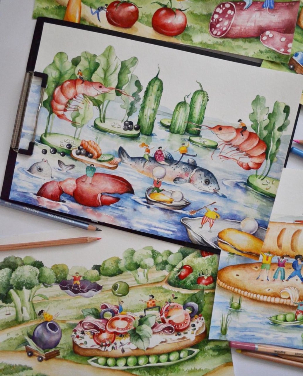 «Отримавши опис проекту від Varus, у мене одразу виникла купа ідей. Тема маленьких людей і великих продуктів змалювалася сама собою та втілилася на папері. А згодом була перенесена на сертифікати ручної роботи, створені серцем», – поділилася враженнями ілюстраторка Анастасія Білецька.