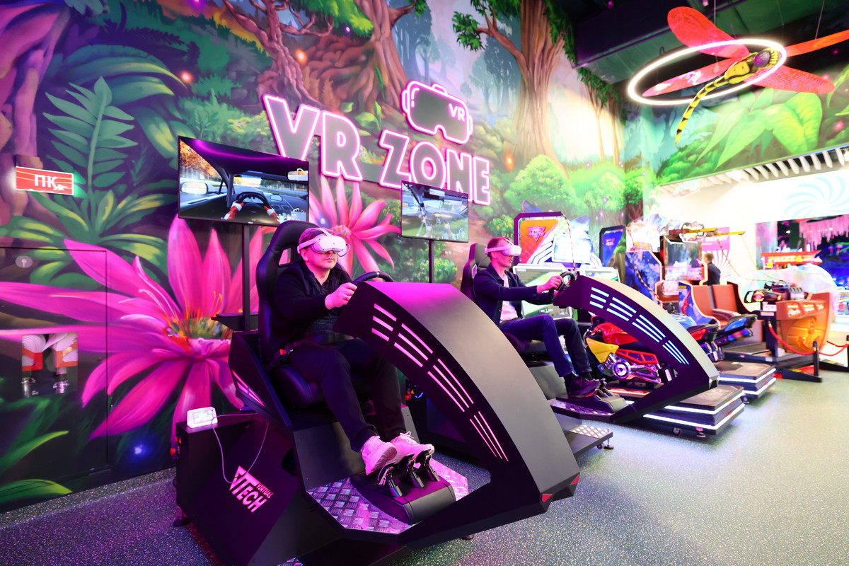 Наприклад, тут є болід Формули-1 з віртуальною симуляцією перегонів, оригінальним кермом та справжнім сидінням пілота, симуляції мото та стріт-рейсингу, польоту на винищувачах, морські пригоди, VR-кінотеатр зі спецефектами та інші віртуальні розваги.