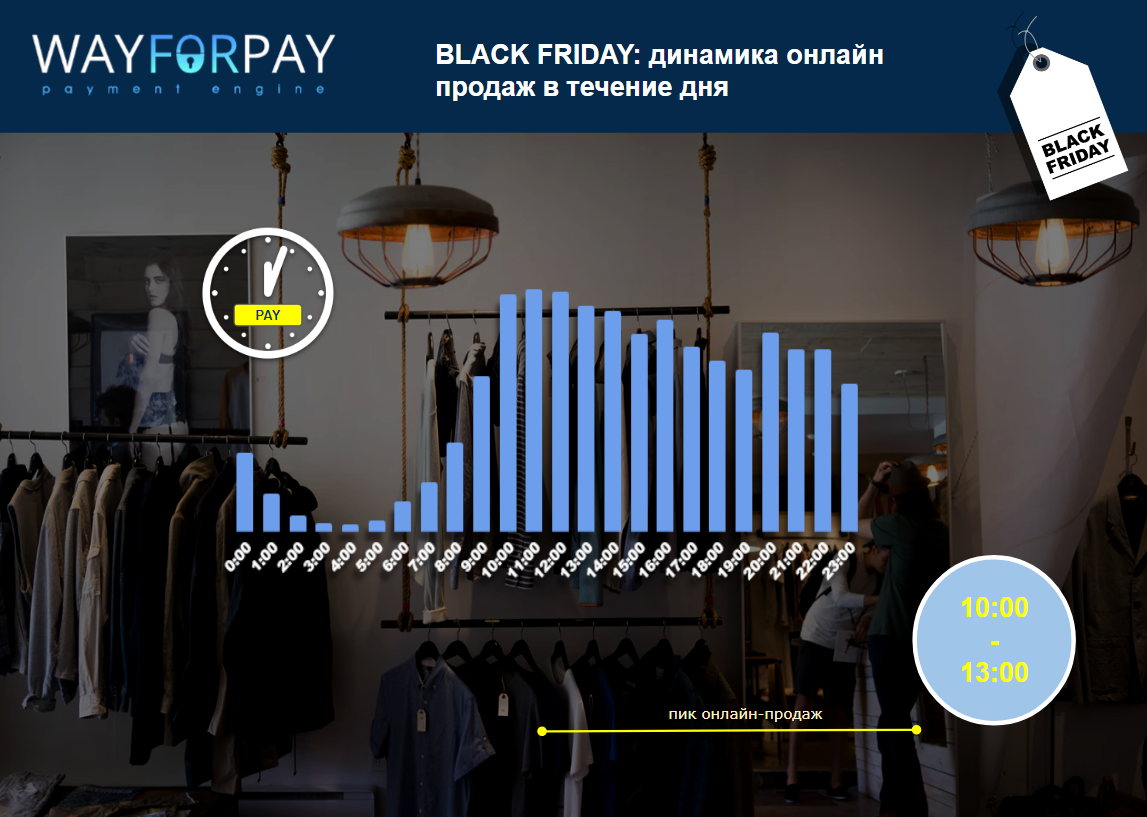 В Америці, в день проведення Чорної п’ятниці працівники, як правило, беруть вихідний. В Україні, за даними WayForPay, пік покупок також прийшовся на період робочого часу – з 10.00 до 13.00.