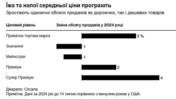 Товари середньої цінової категорії в США все більше втрачають місце на полицях та у клієнтів, поступаючись преміальним і недорогим товарам, що часто випускаються під приватними торговими марками магазинів.
