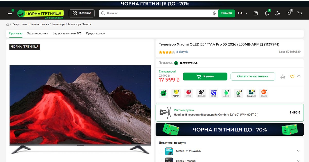 Для прикладу взяли Xiaomi 55" TV A Pro 55 2026.