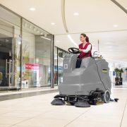 Для прибирання великих магазинів (площею від 6000 кв. м), ТЦ і ТРЦ найоптимальнішим варіантом є підлогомийно-всмоктуючі моделі В 110 та В 150 з сидінням для оператора. Ці машини легко і швидко впораються з прибиранням великих торгових залів, коридорів, холів, проходів, естакад і навіть алей. Вони забезпечують інтенсивну очистку, справляються навіть з самими стійкими забрудненнями, скорочують час прибирання загальних зон на 20% і дозволяють скоротити витрати на 10% (зокрема на заробітну плату співробітникам, оскільки механізованим прибиранням може займатися один співробітник). За короткий час дані моделі якісно очистять підлогу від будь-яких забруднень, видалять бруд зі швів на плитковій підлозі, зроблять миття по всій поверхні підлоги. А висока маневреність машини і легка система управління (за допомогою всього одного поворотного перемикача) значно спрощує процес прибирання.