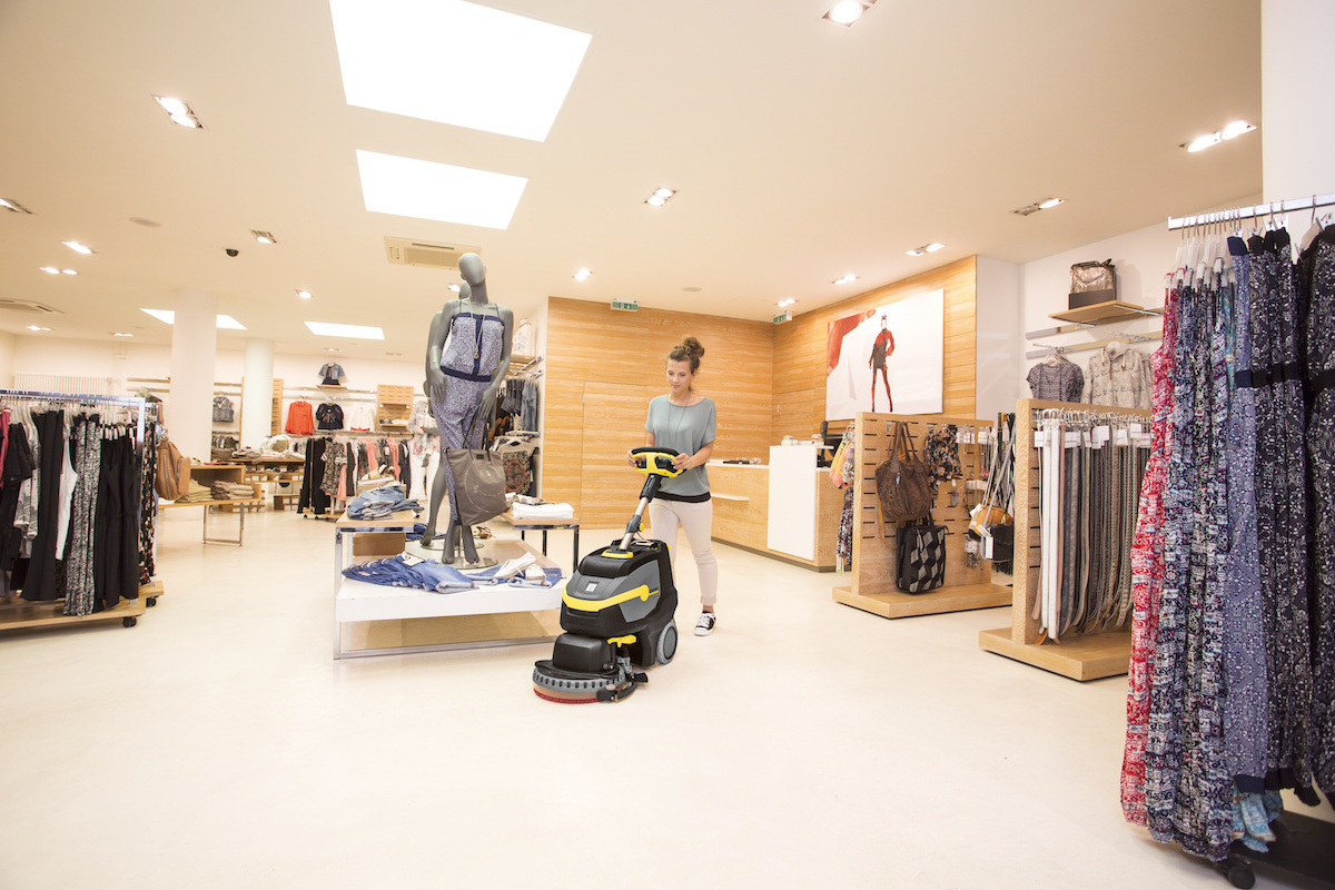 Роздрібні мережі, що динамічно розвиваються, зазвичай обирають для прибирання своїх приміщень високотехнологічні підлогомийно-всмоктуючі машини (моделі BD 38/12 та BR 35/12) з літій-іонними батареями, довгим терміном служби і швидким зарядом з можливістю проміжної підзарядки, якщо потрібно в короткі терміни відновити працездатність машини. Ці компактні і маневрені моделі відмінно підійдуть для швидкого прибирання невеликих приміщень з високою прохідністю, а також для ефективного механізованого прибирання санвузлів. Переваги – низький рівень шуму, простота в управлінні, економія на хімічних засобах для прибирання до 10%, легка очистка кутів і виконання комплексного прибирання тільки одним співробітником.