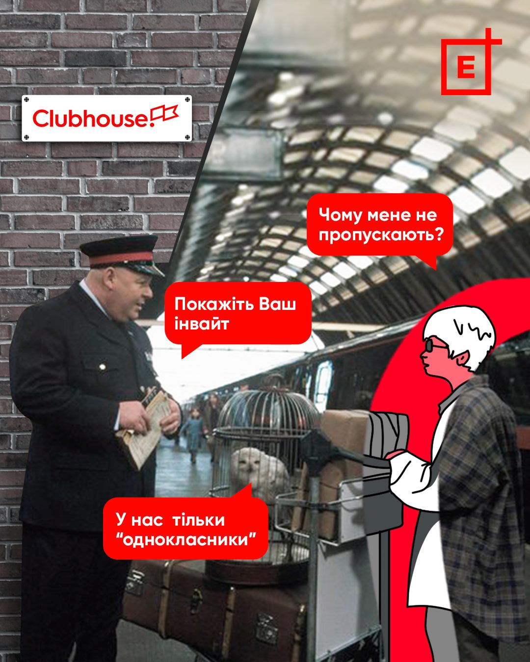 В Eldorado цього разу щось намішали: Clubhouse, Гарі Поттера, Однокласників. Щодо підпису до ілюстрації, то в ньому рітейлер розмірковує: “Кажуть, Clubhouse — це задум божий, який зібрав в одному ковчезі всіх любителів голосових повідомлень та зачинив їх в одній кімнаті. Залишилося тільки розгадати: чому користувачів андроїдів помилувано?”