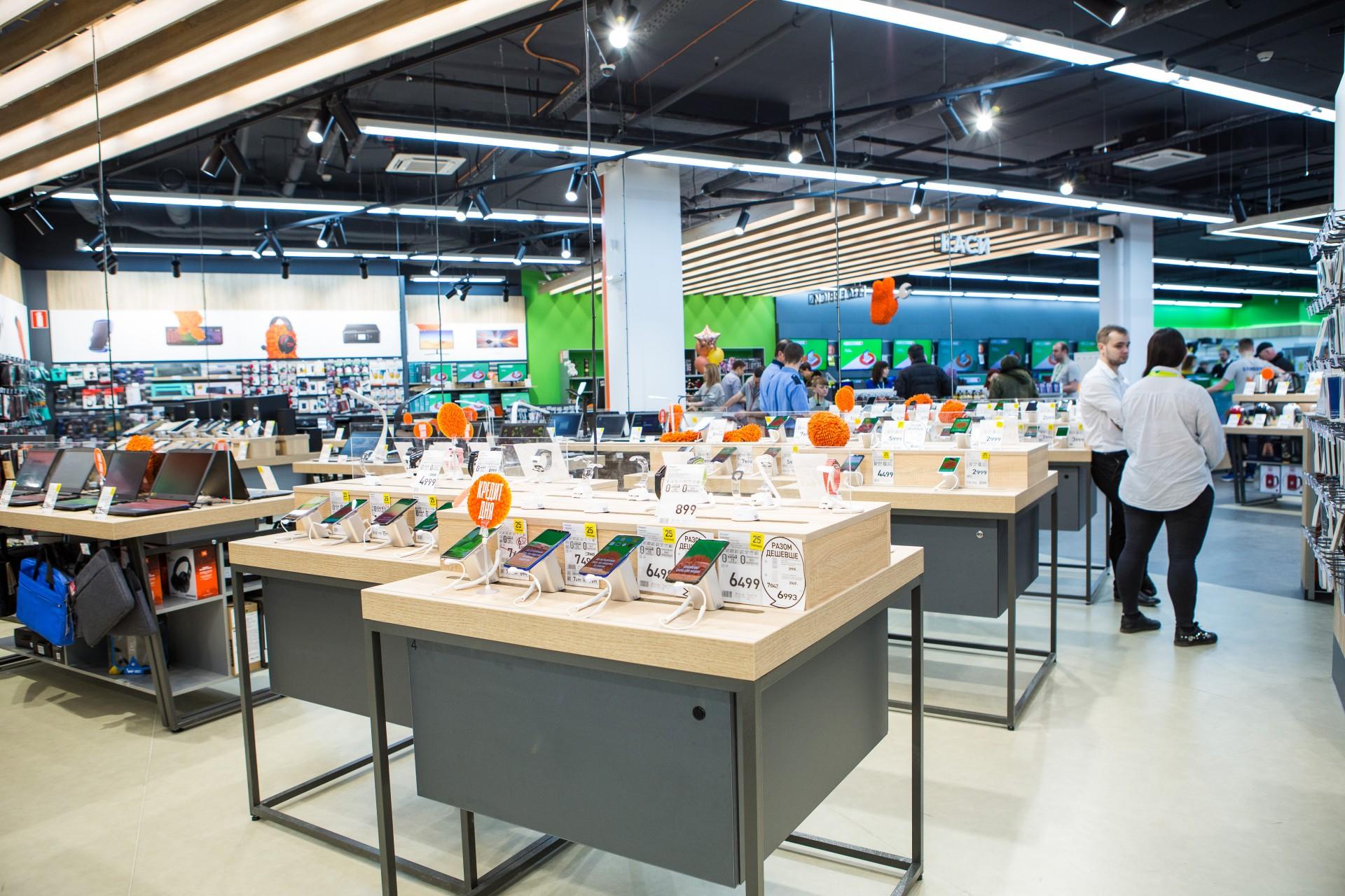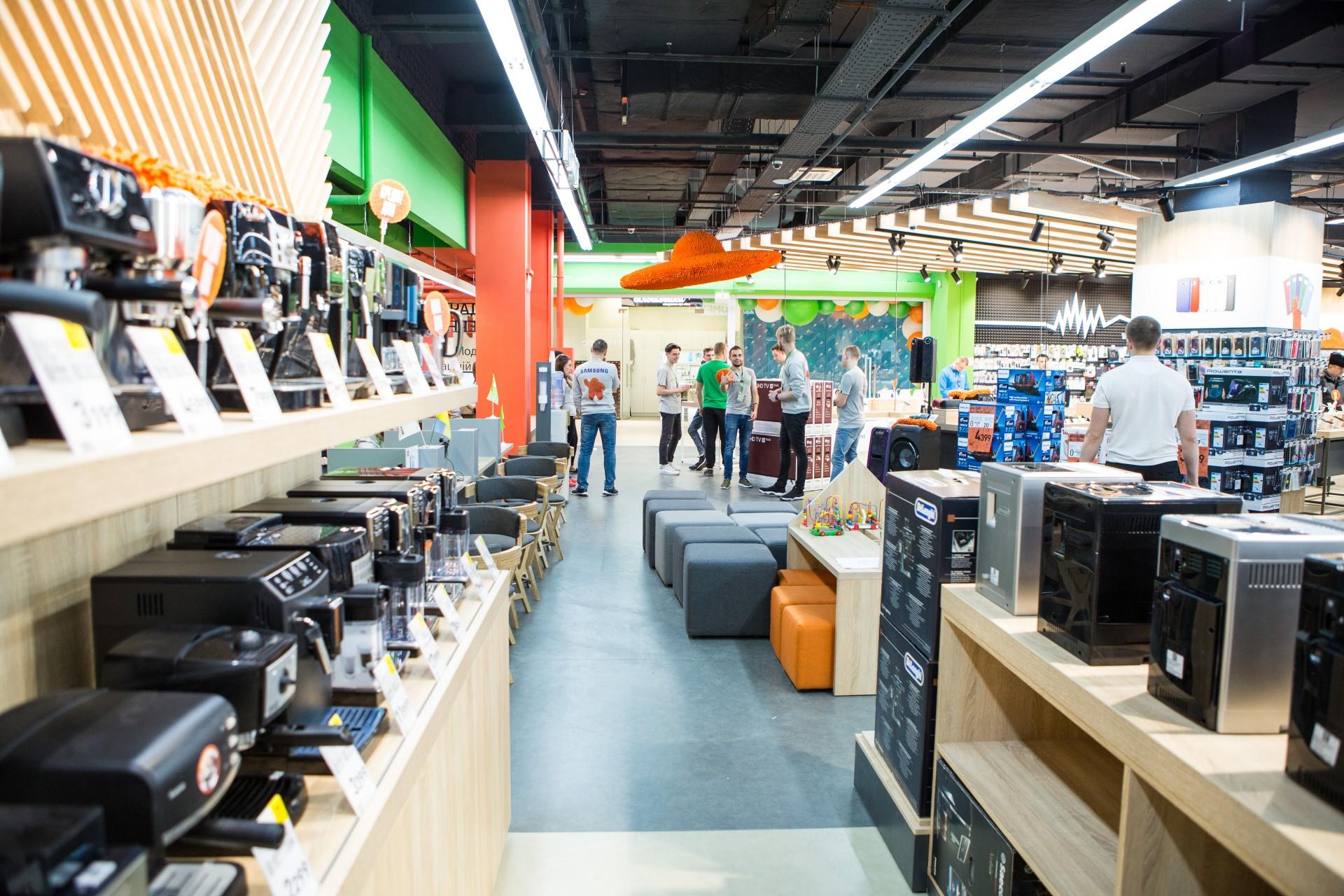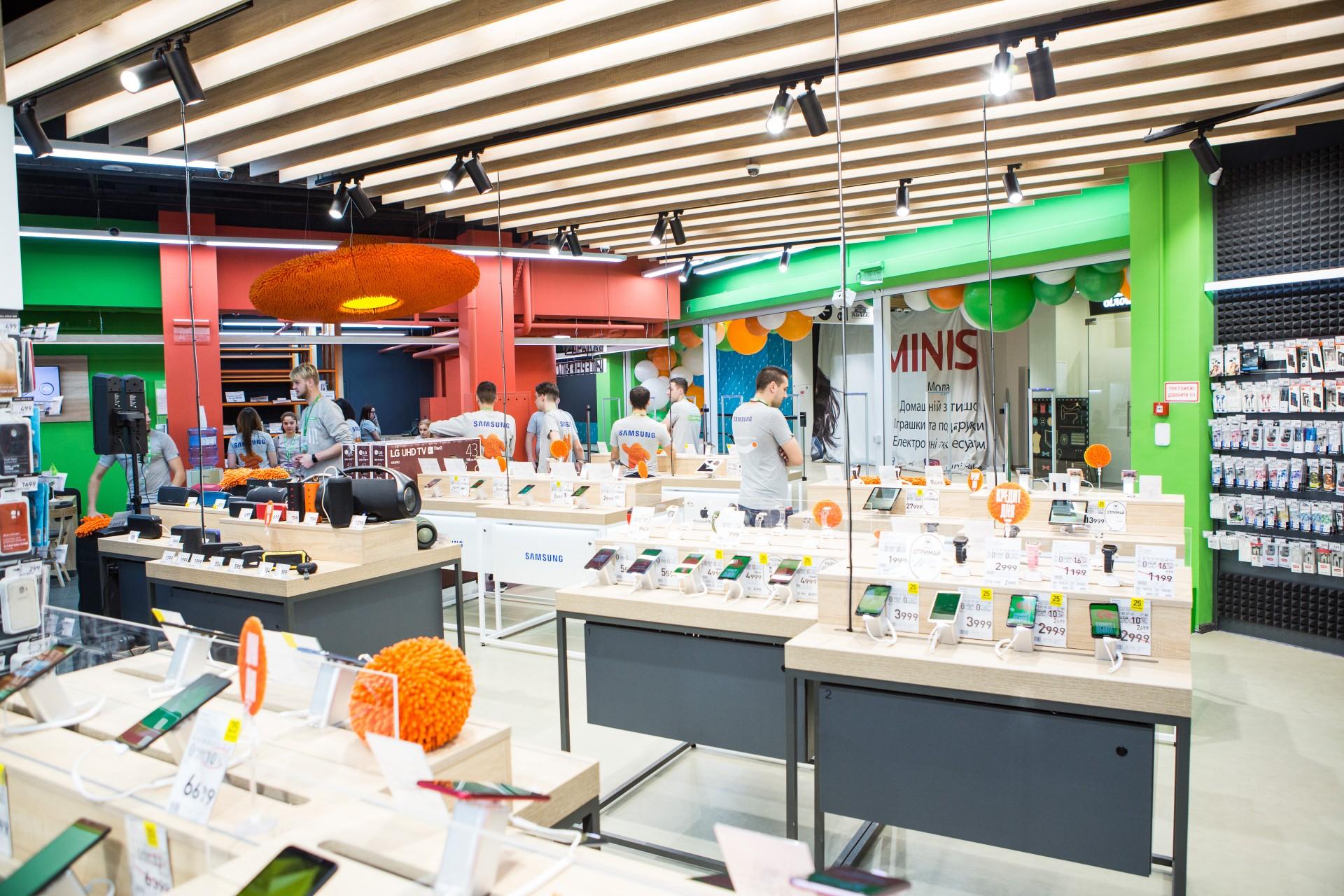Традиційно в магазині представлені категорії аудіо, відео та побутової техніки і гаджетів, а також розширена зона інноваційних товарів та електротранспорту. Серед них можна знайти зразки робототехніки, квадрокоптери, фітнес-браслети, смарт-годинники, дрони, товари для активного способу життя, незвичайні гаджети та інше. Тут же знаходиться IT-сервіс, фахівці якого допомагають налаштувати будь-яку техніку, а також провести настройку оновлень і додатків в смартфонах.