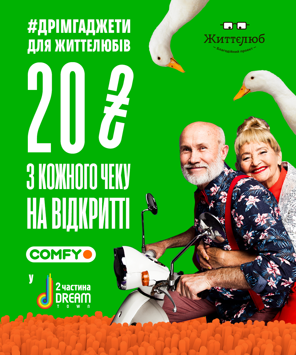 З нагоди відкриття Comfy буде відраховувати 20 гривень з кожного чека в благодійний фонд Життєлюб. Кошти підуть на техніку для підопічних фонду: мультиварки, чайники тощо. Традиційно на відкритті відвідувачам пропонуються знижки до 50%, спеціальні пропозиції та гарантовані подарунки першим 1000 покупцям.