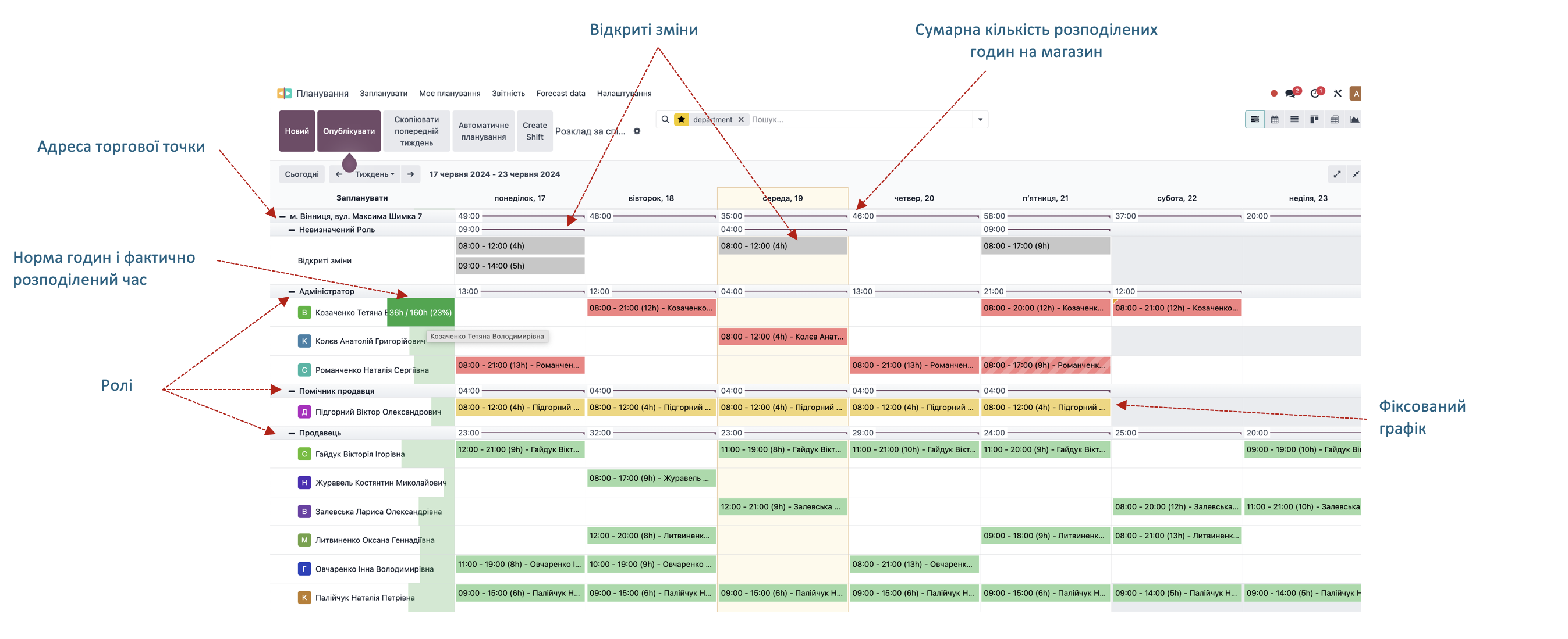 Але сьогодні, за умов відчутної нестачі співробітників, основний фокус змістився на гнучке та ефективне використання робочого часу наявного персоналу мережі. Але деякі ритейлери досі планують робочі графіки лінійного персоналу за стандартними схемами 2х2 чи 3х3. Такий підхід не є гнучким і не враховує пікові та мінімальні навантаження на торгові точки у різні періоди.