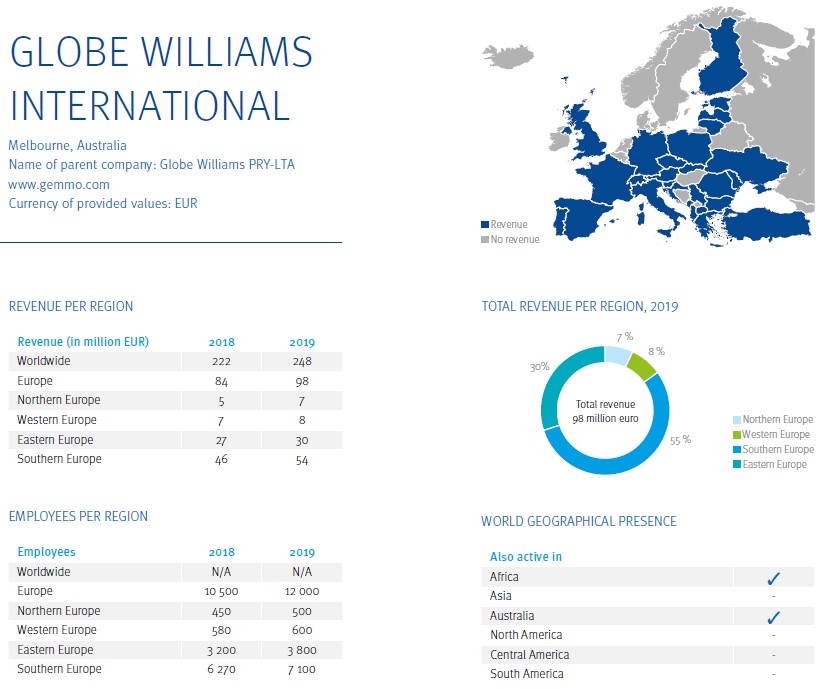 Заснована в Австралії в 1999 році, компанія Globe Williams International має штаб-квартири в Мельбурні (Австралія) та Афінах (Греція) і свої представництва у понад 30 країнах світу, надаючи повний та широкий асортимент послуг і товарів, пов’язаних з фасіліті-менеджментом.
