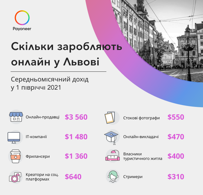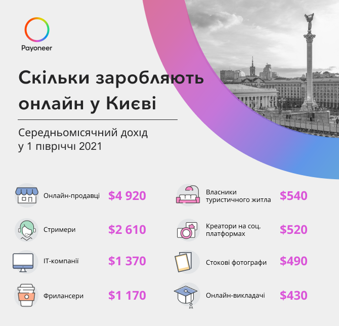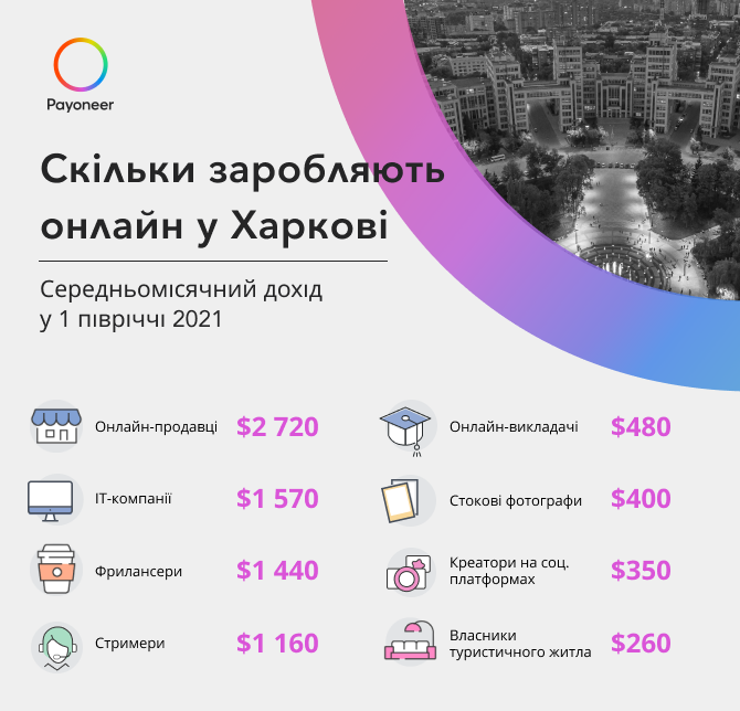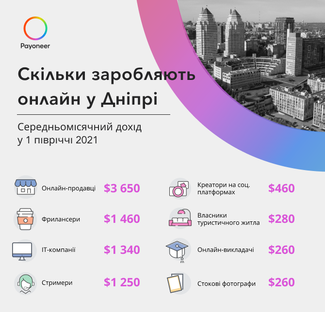 Платіжна платформа Payoneer провела дослідження у п’яти великих містах України та поділилась даними про те, де й у яких секторах українці заробляють найбільше на міжнародних ринках.