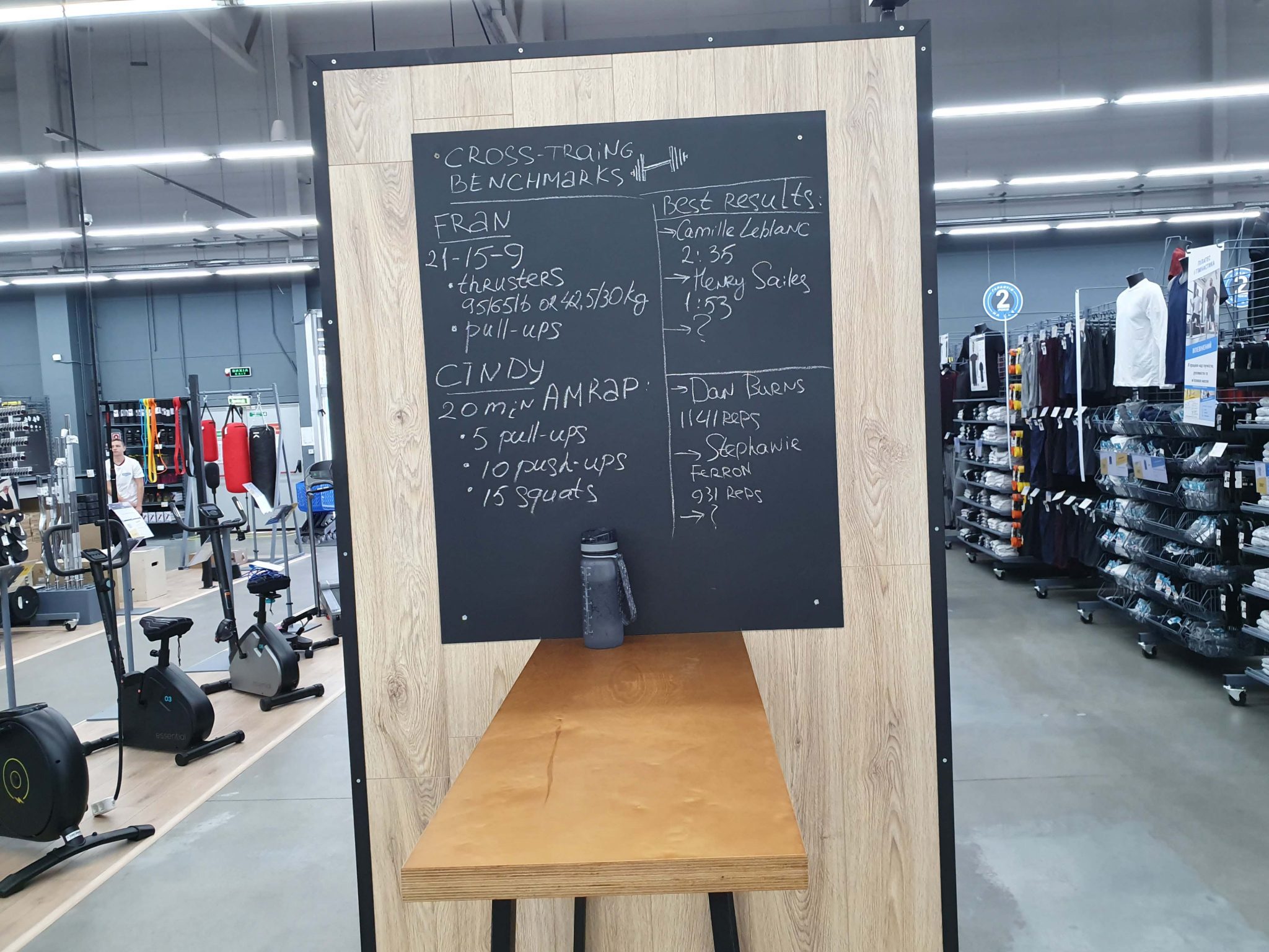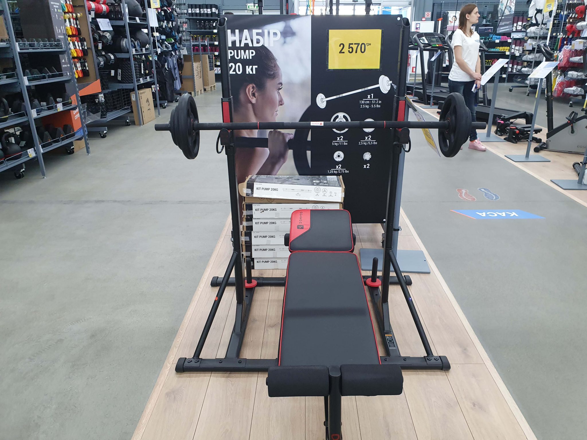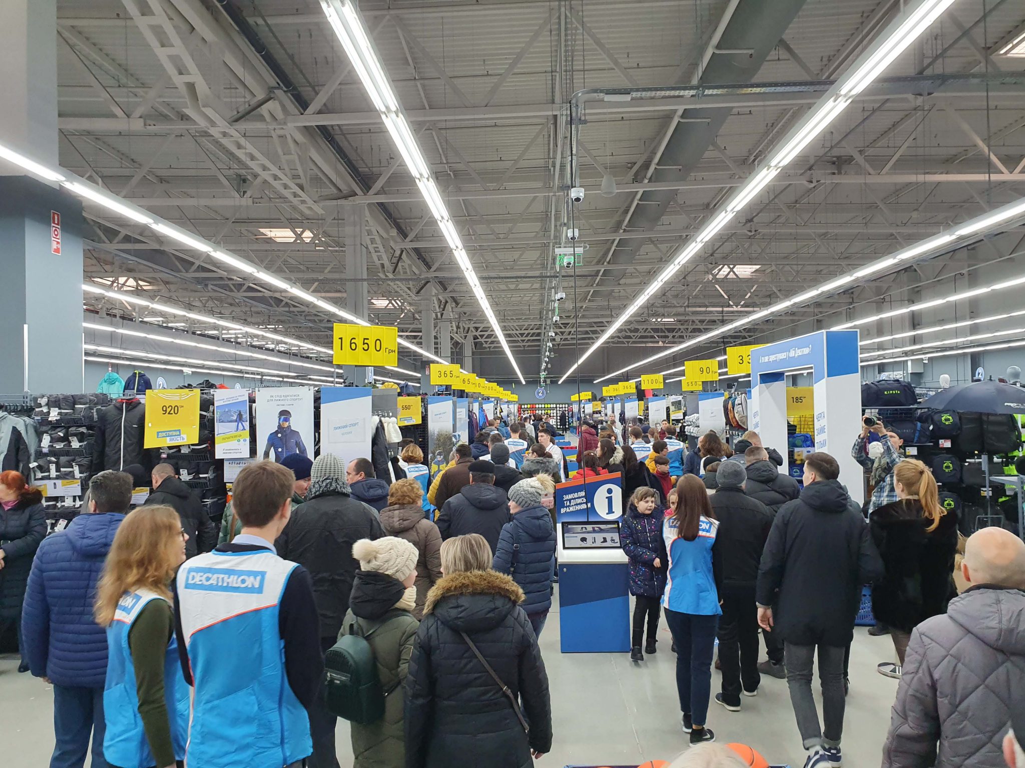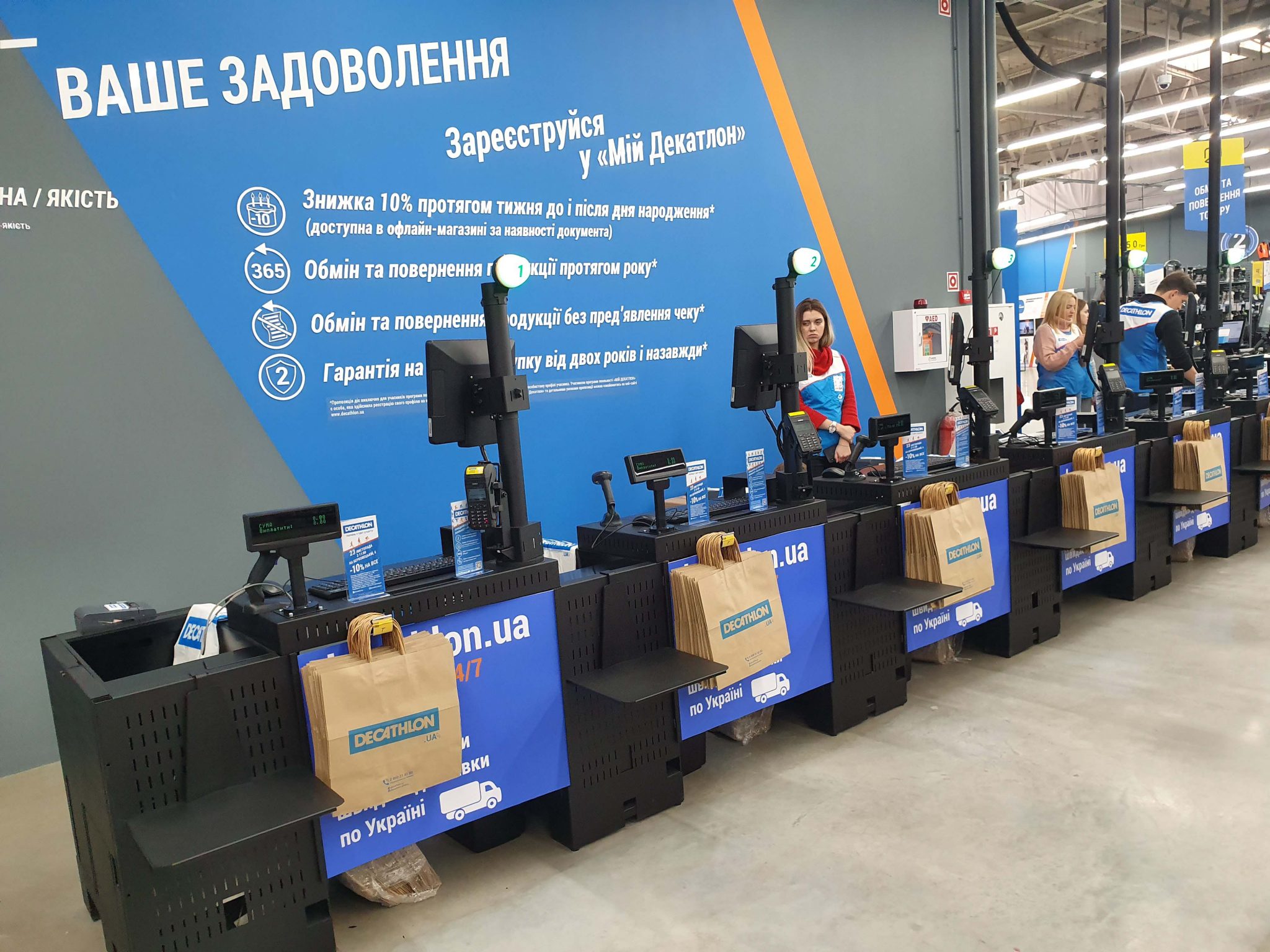 Для відвідувачів працює сім кас і одна точка сервісного обслуговування. Всього в магазині продається 5000 SKU, у сумі ж це – 70 000 одиниць запропонованих товару. Викладку розширила максимальна для мережі представленість товарів для бігу, фітнесу, зимових видів спорту та бодібілдингу. Серед нових видів спорту, товари яких досі не були в Decathlon в Україні – сквош, гольф, сноубордінг, хокей і хокей на траві, а на весну анонсують спорядження для гри паддл і пляжного тенісу.