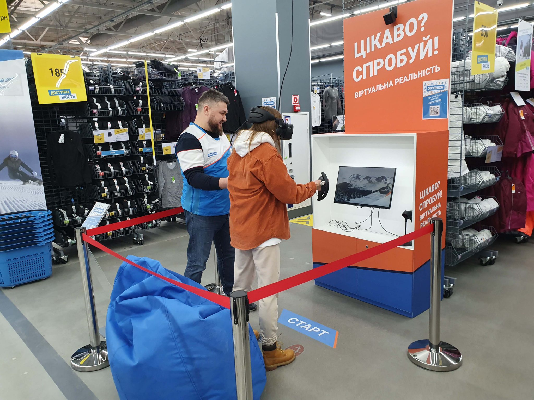 Одним з головних сюрпризів магазину стала зона віртуальної реальності. Учасники програми лояльності Decathlon могли в цей день за допомогою VR-технологій безкоштовно спробувати три виду спорту прямо в магазині: зануритися у підводний світ і, правильно подолавши дистанцію, побачити на фініші “справжніх” китів, спуститися на санках, або на лижах з гір Альп. Всі віртуальні розваги ексклюзивно для магазину були розроблені українською компанією “3DTOUR”.
