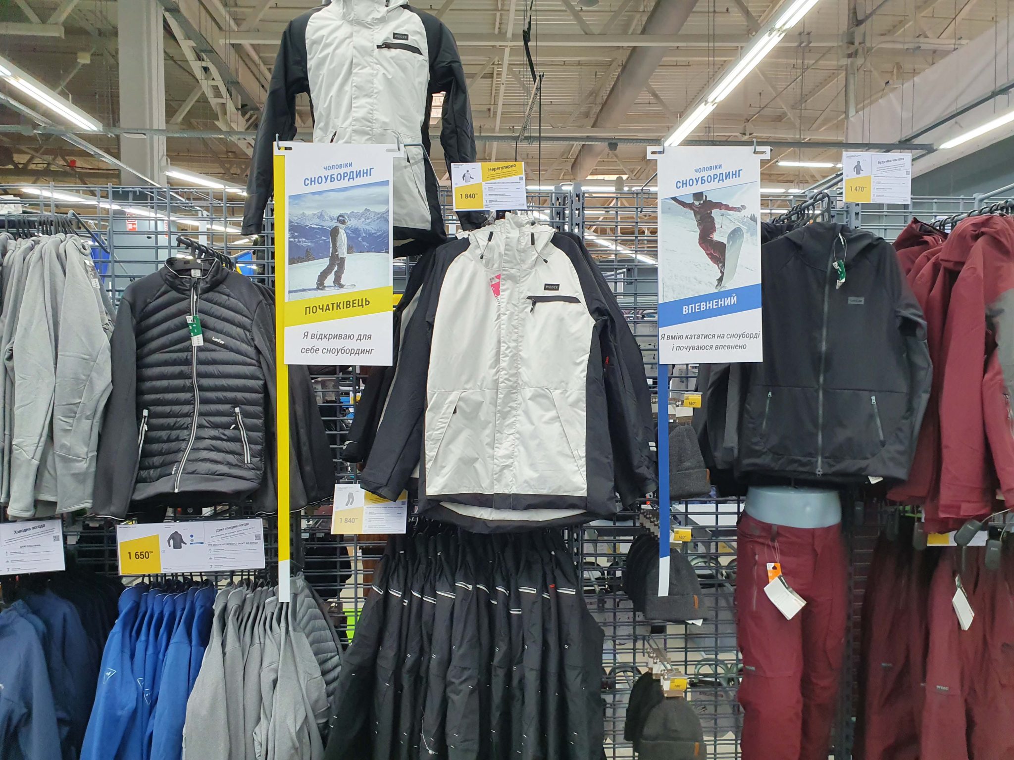 Є в новому Decathlon також українські виробники, зокрема товари для зимових видів спорту: інвентар для хокею, ковзани, лижі. Як зізналися в компанії, ціни на українські бренди в Decathlon вищі, ніж в Європі. Пов’язано це з тим, що, наприклад, лижі після виробництва на Західній України, відправляються на континентальний склад до Франції, звідти на склад в Польщі, а лише потім – знов до України. Таким чином, товар розмитнюють двічі. “Ми працюємо над тим, щоб цей ланцюжок був меншим, це дозволить значно знизити деякі ціни”, – пояснюють в Decathlon Ukraine.