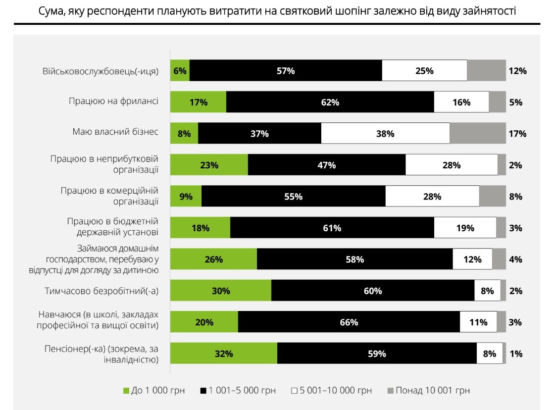 Українці продовжують тримати фокус на найголовнішому: 70% планують спрямувати частину свого святкового бюджету на благодійну допомогу. Із них 79% направлять кошти захисникам на передовій. 52% опитаних готові віддати на благодійність половину свого бюджету.