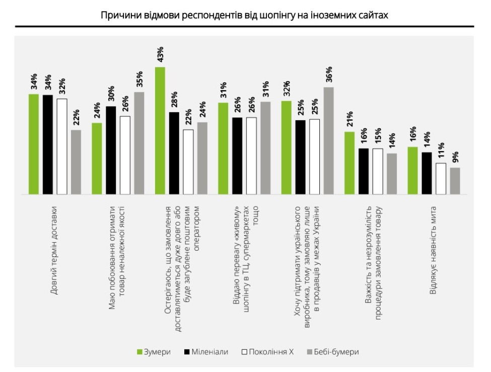Водночас українці готові відкласти покупку товару з вітрини та чекати на його доставку, якщо на закордонному сайті ціна буде на 20% нижчою. Цікаво, що тільки 15% покупців категорично не готові довго чекати закордонну посилку з дешевшим товаром.