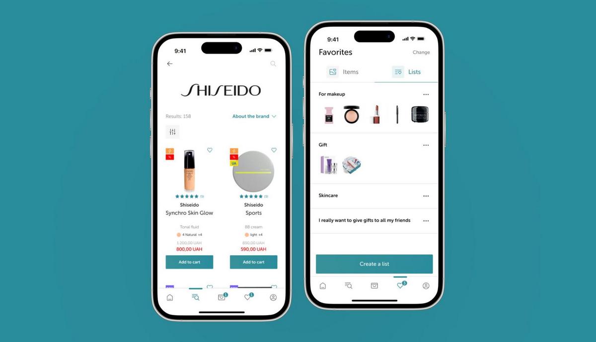 «Нам цікаво було обіграти розділ сайту «Список улюбленого», яким доволі часто користуються покупці. Для застосунку ми хотіли реалізувати два розділи: «Всі улюблені товари» та окремі списки з товарами. Оскільки АРІ дозволяє зберігати продукт лише у списки, ми вирішили обіграти показ усіх улюблених товарів на одному екрані суто візуально», – ділиться деталями Марта Бабельська.
